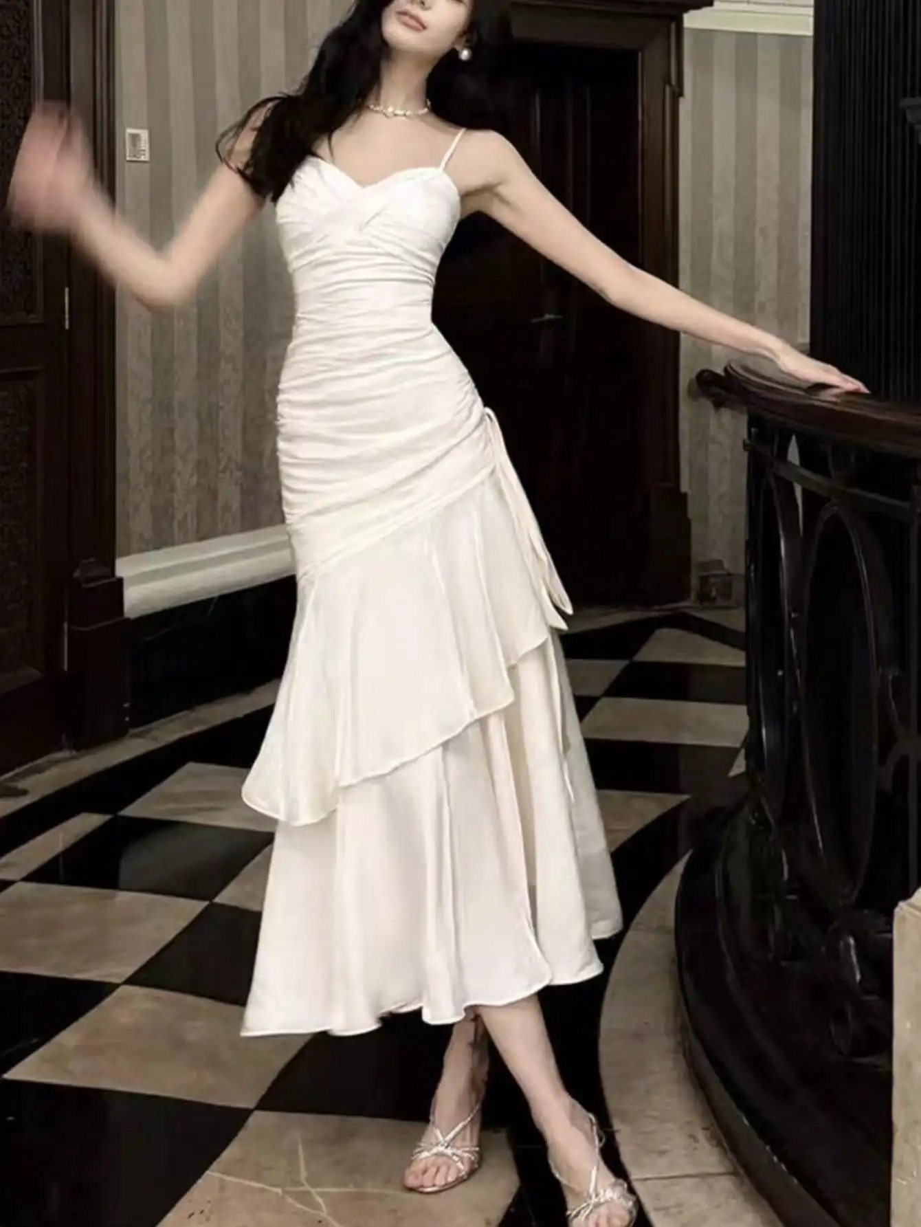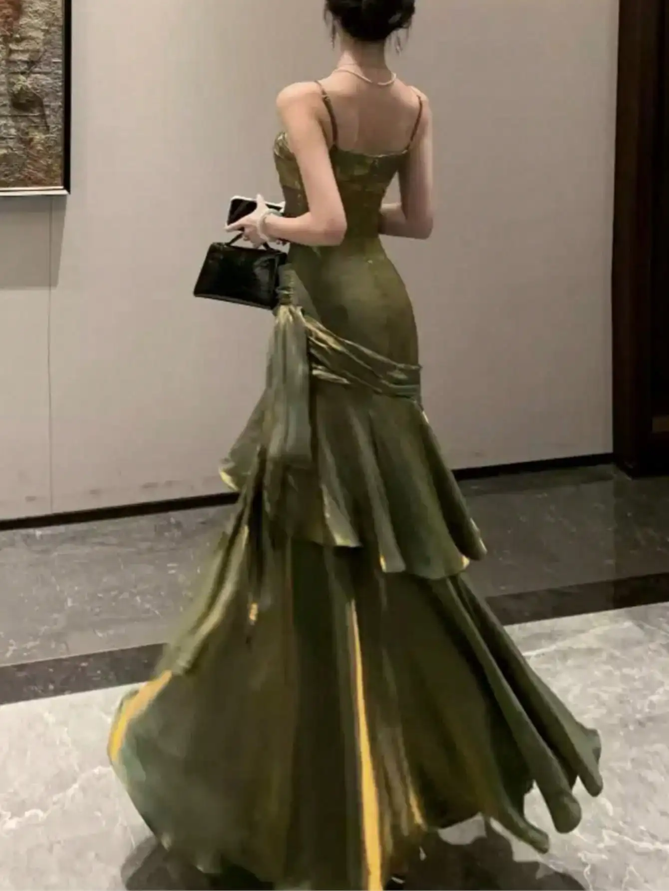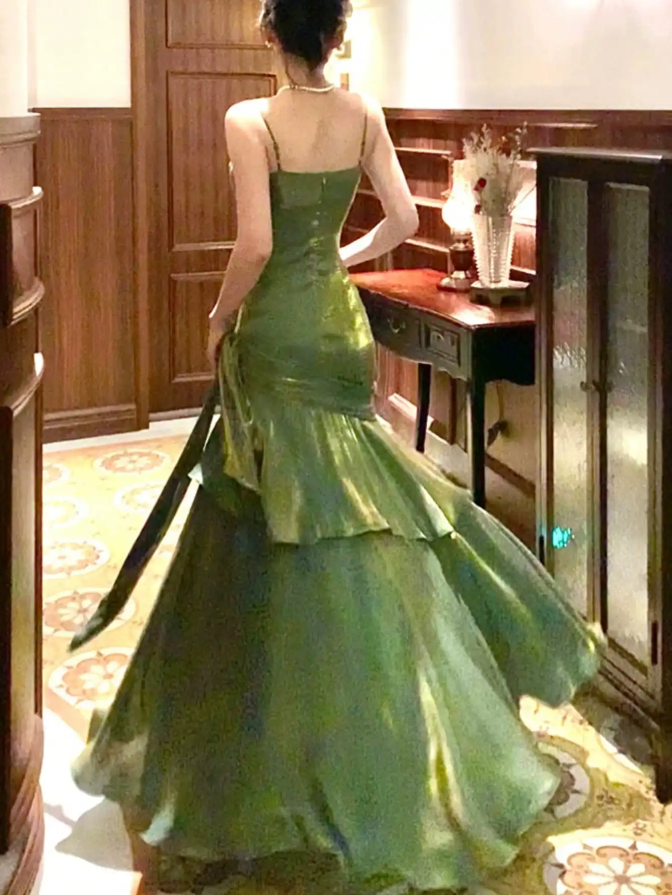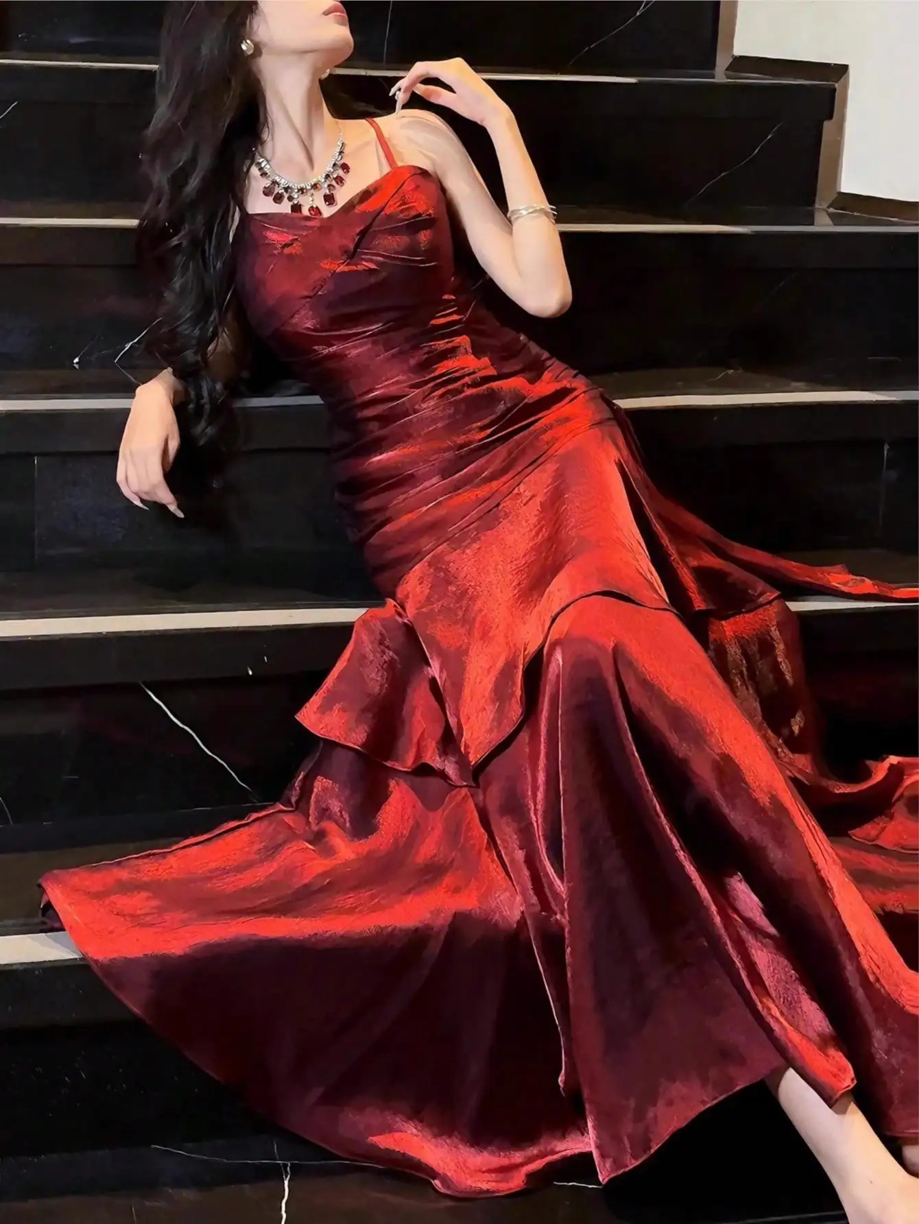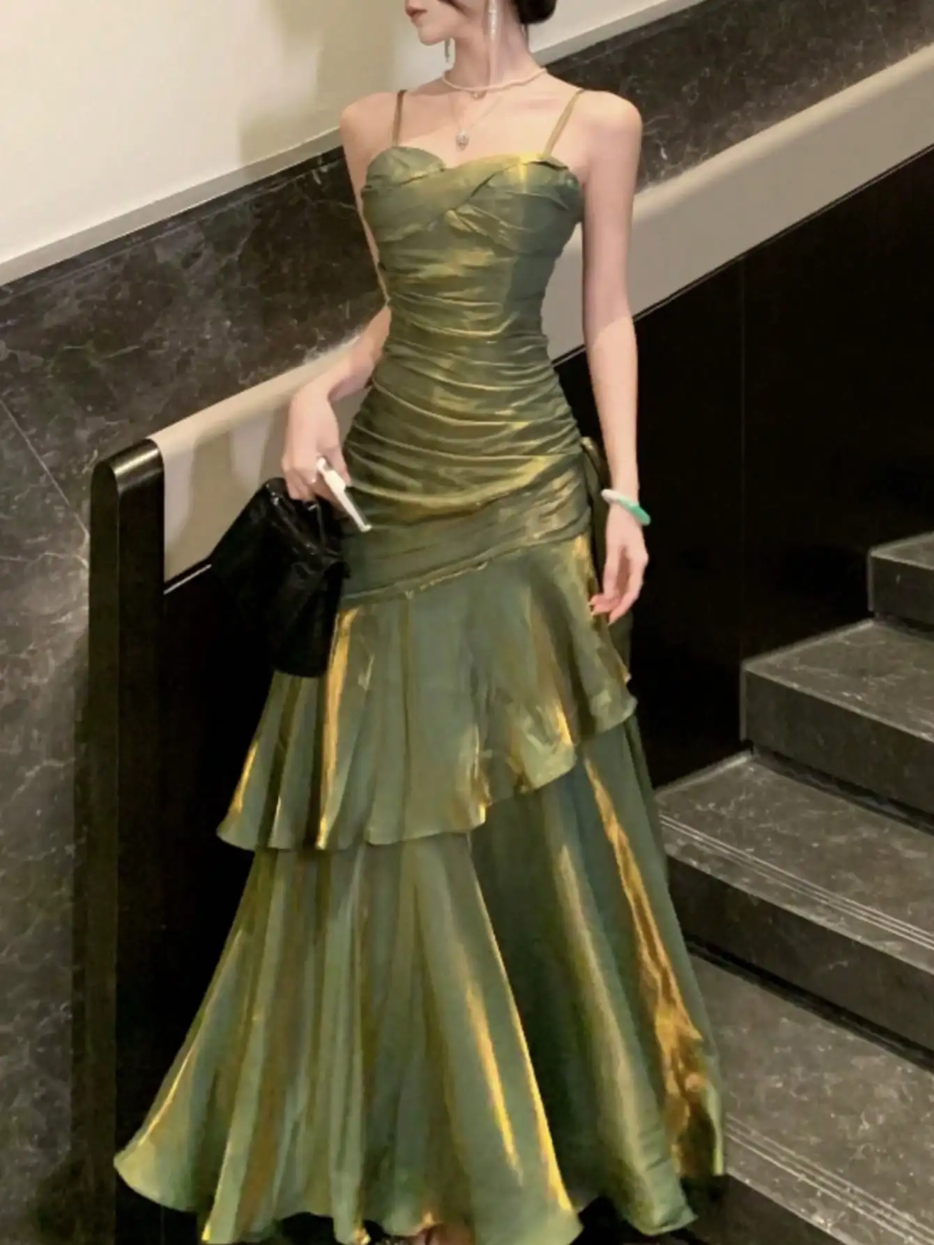 Hnewly Women Elegant Spaghetti Straps Ruffles Graduation Party Dress Slim Waist Wedding Bridesmaid Dresses Festival Formal Clothes New
