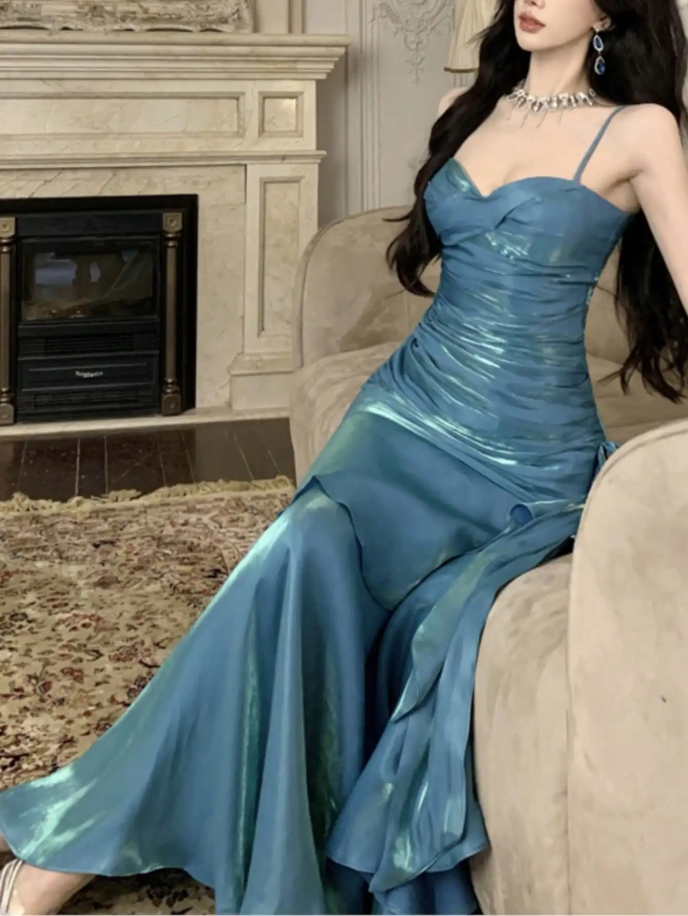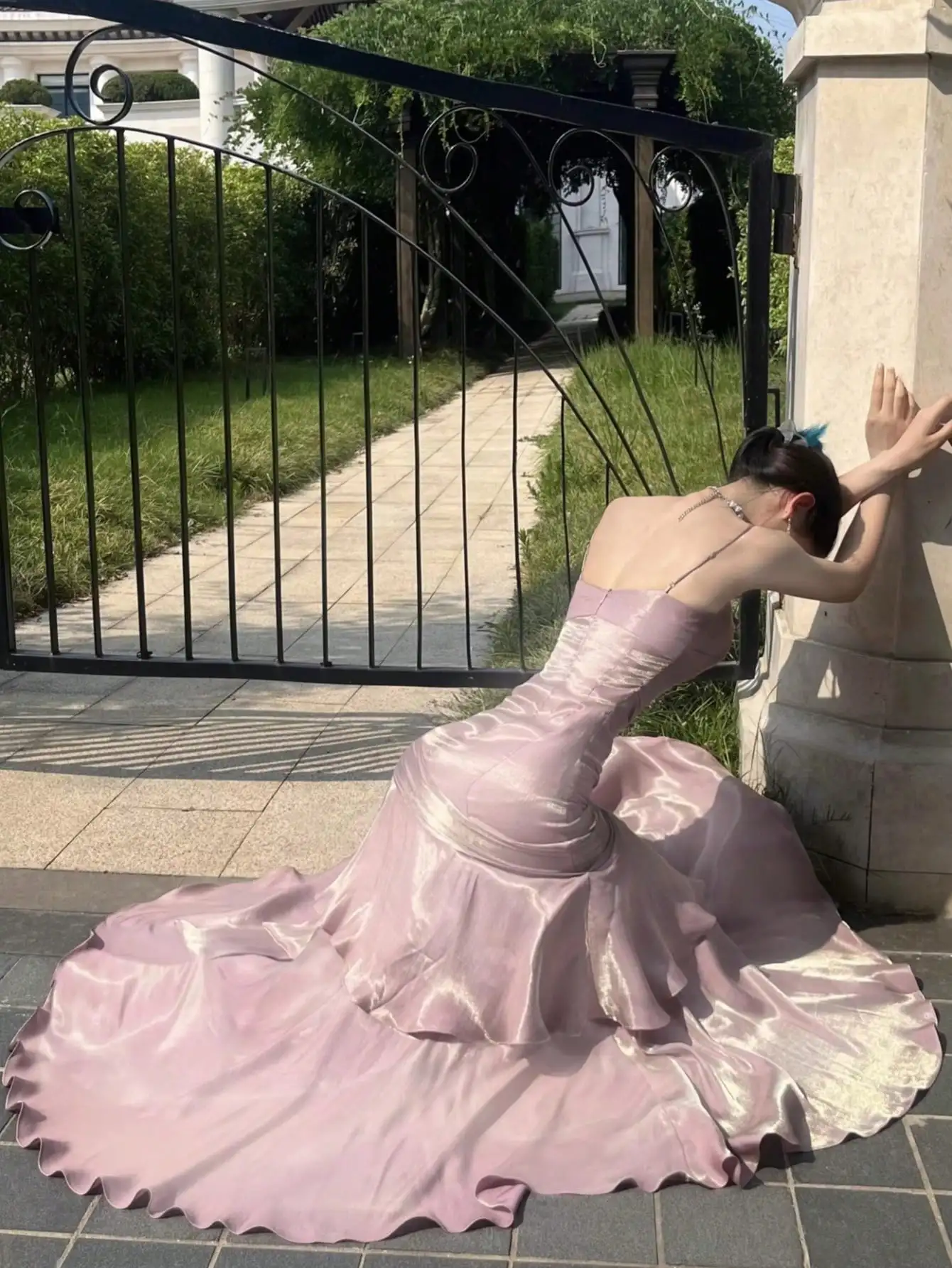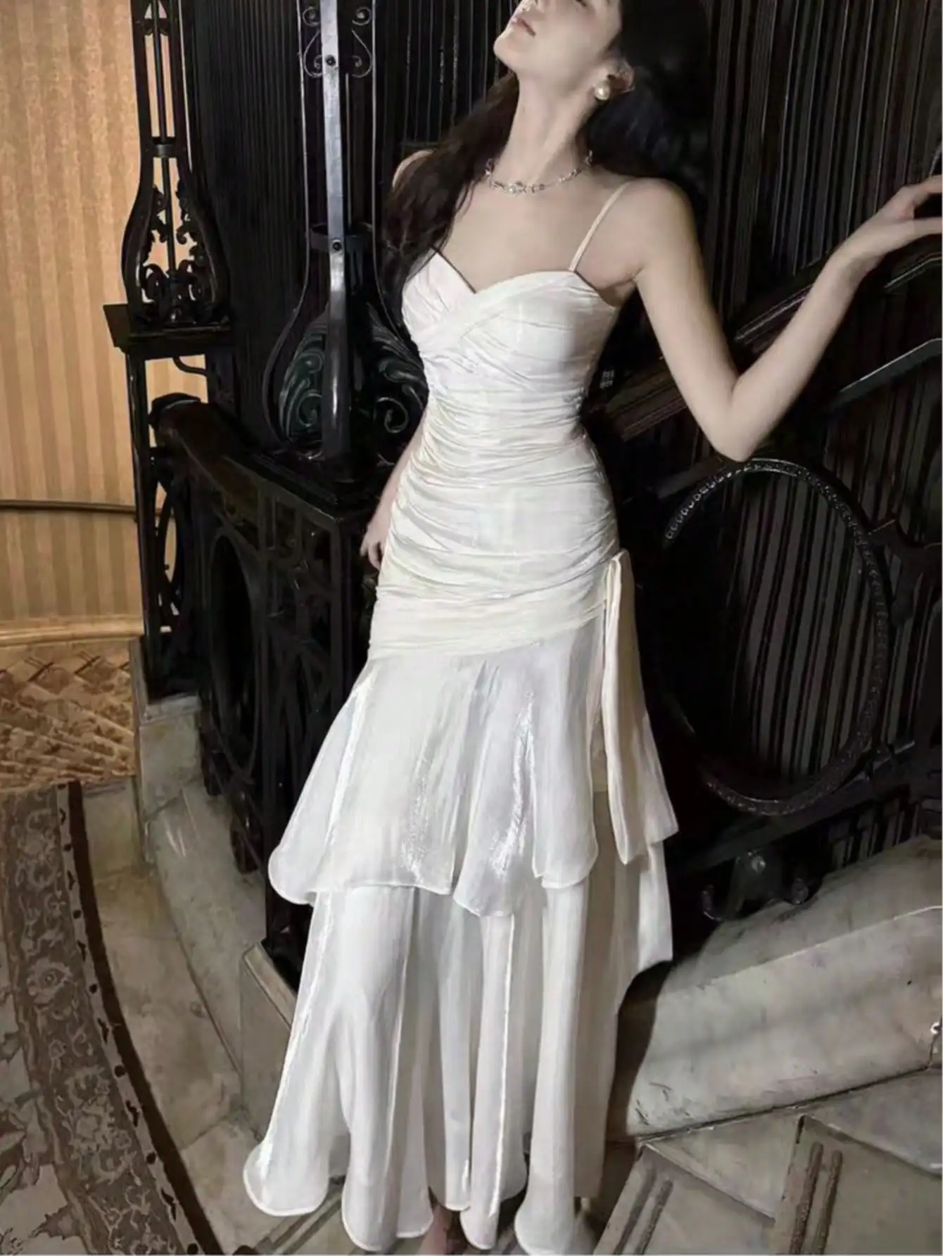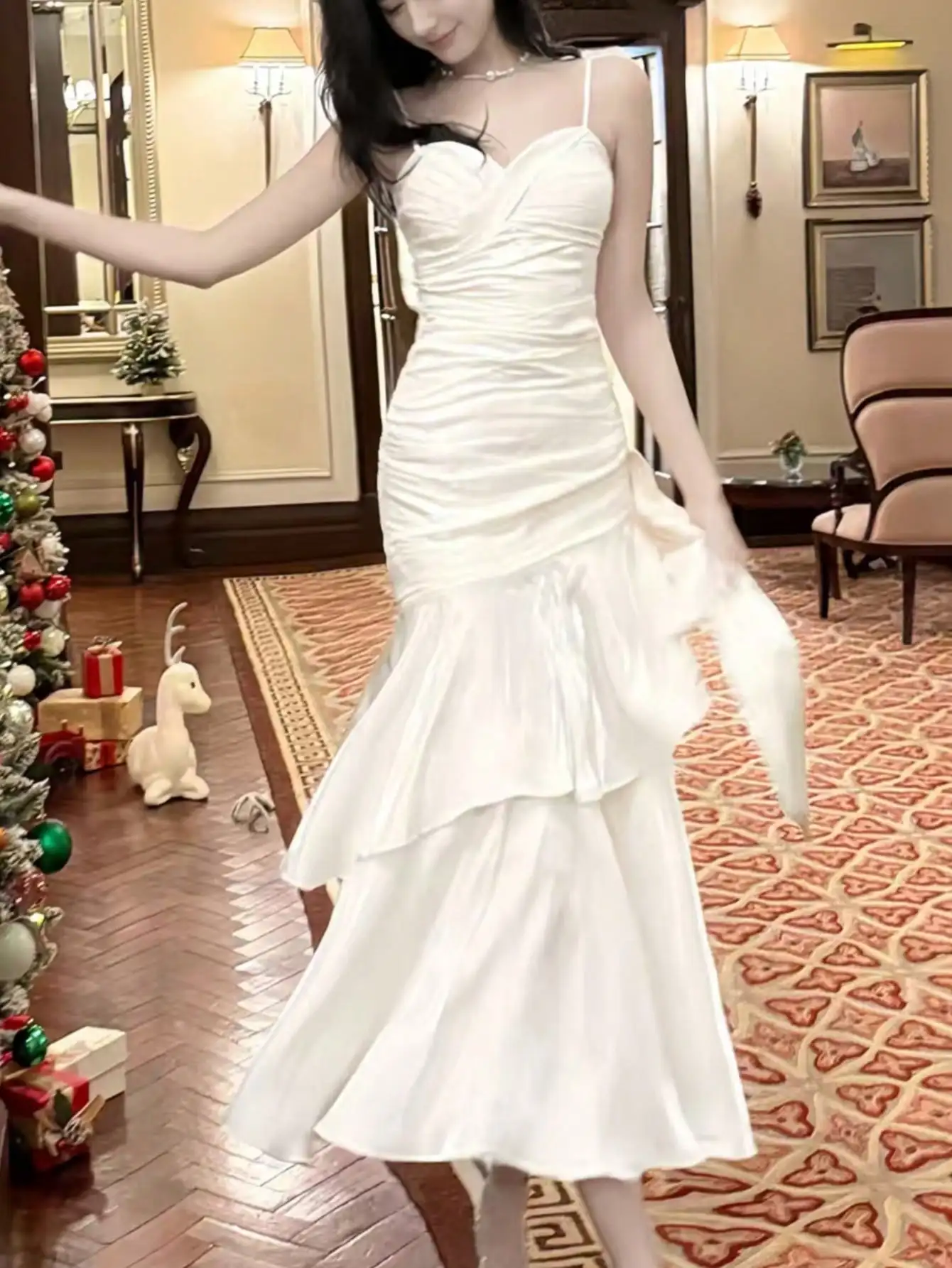 Hnewly Women Elegant Spaghetti Straps Ruffles Graduation Party Dress Slim Waist Wedding Bridesmaid Dresses Festival Formal Clothes New