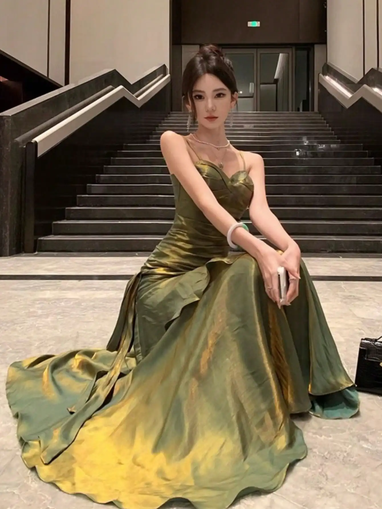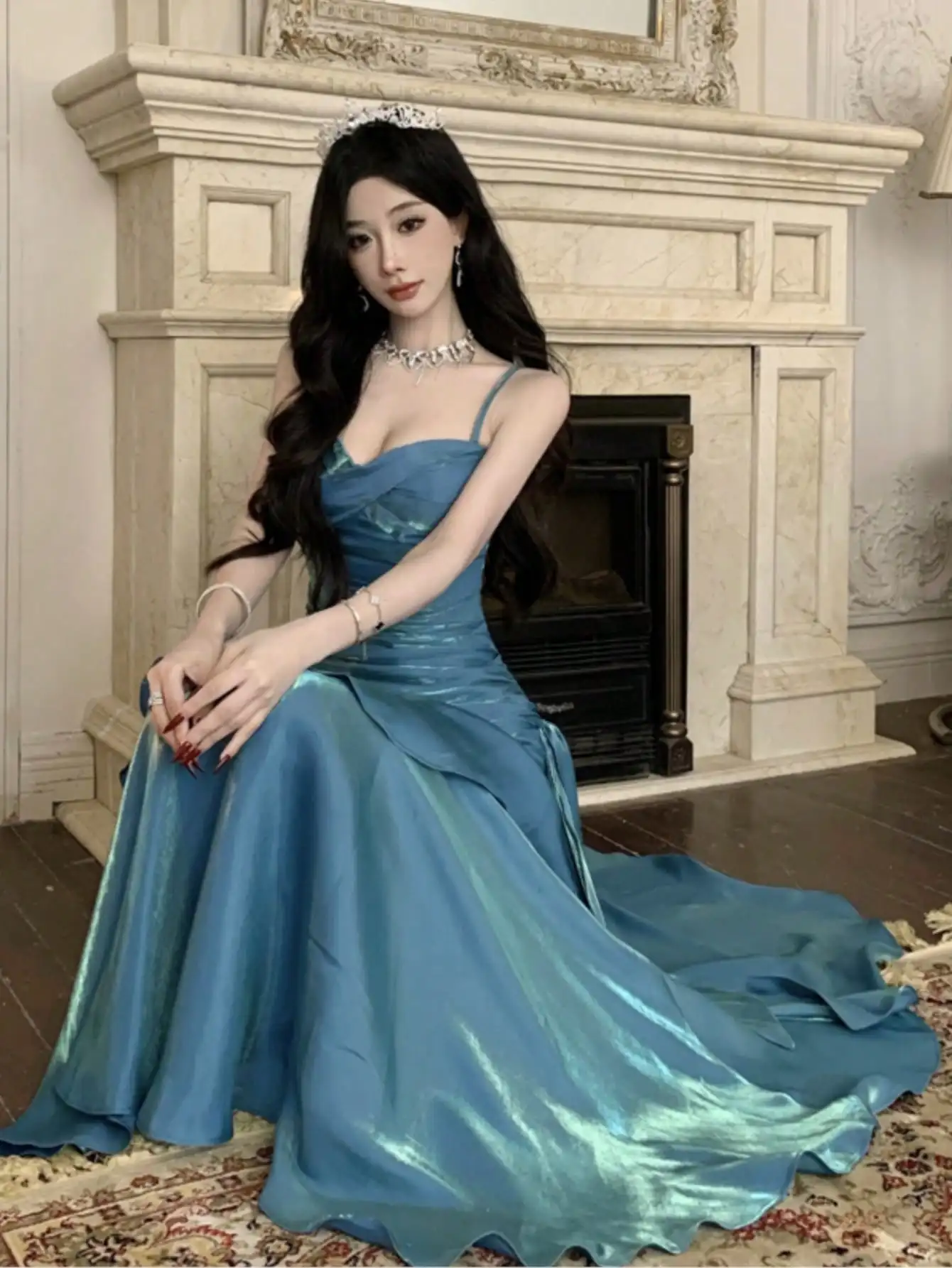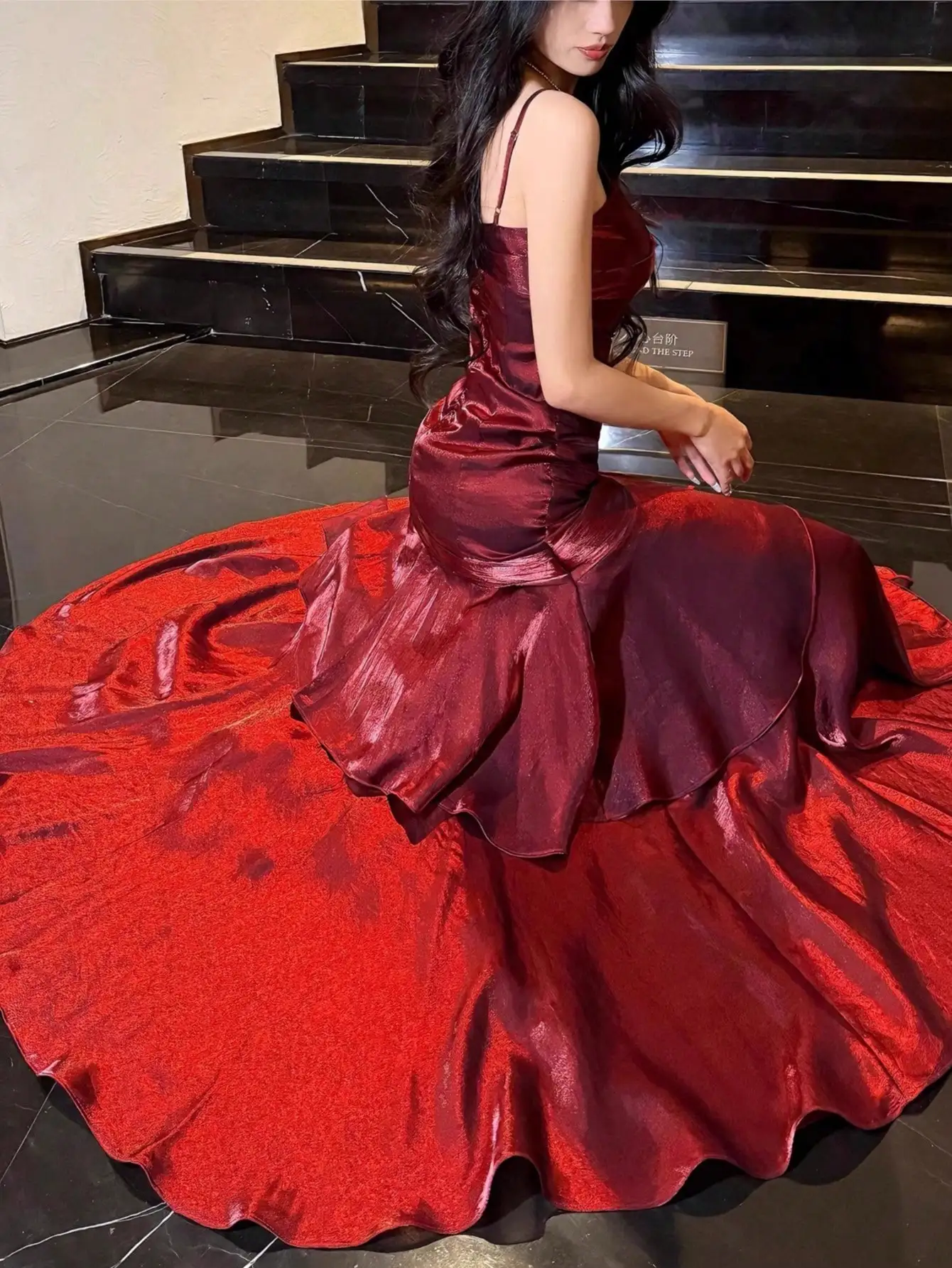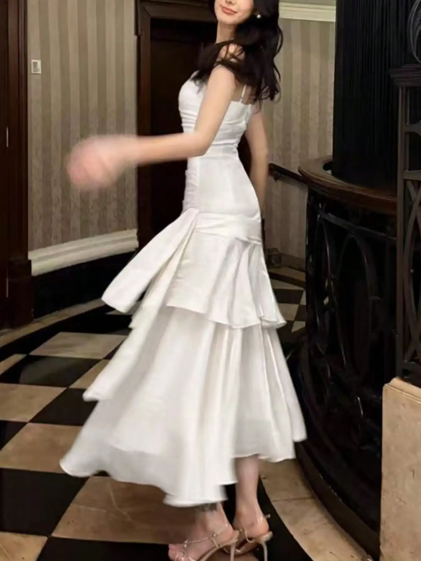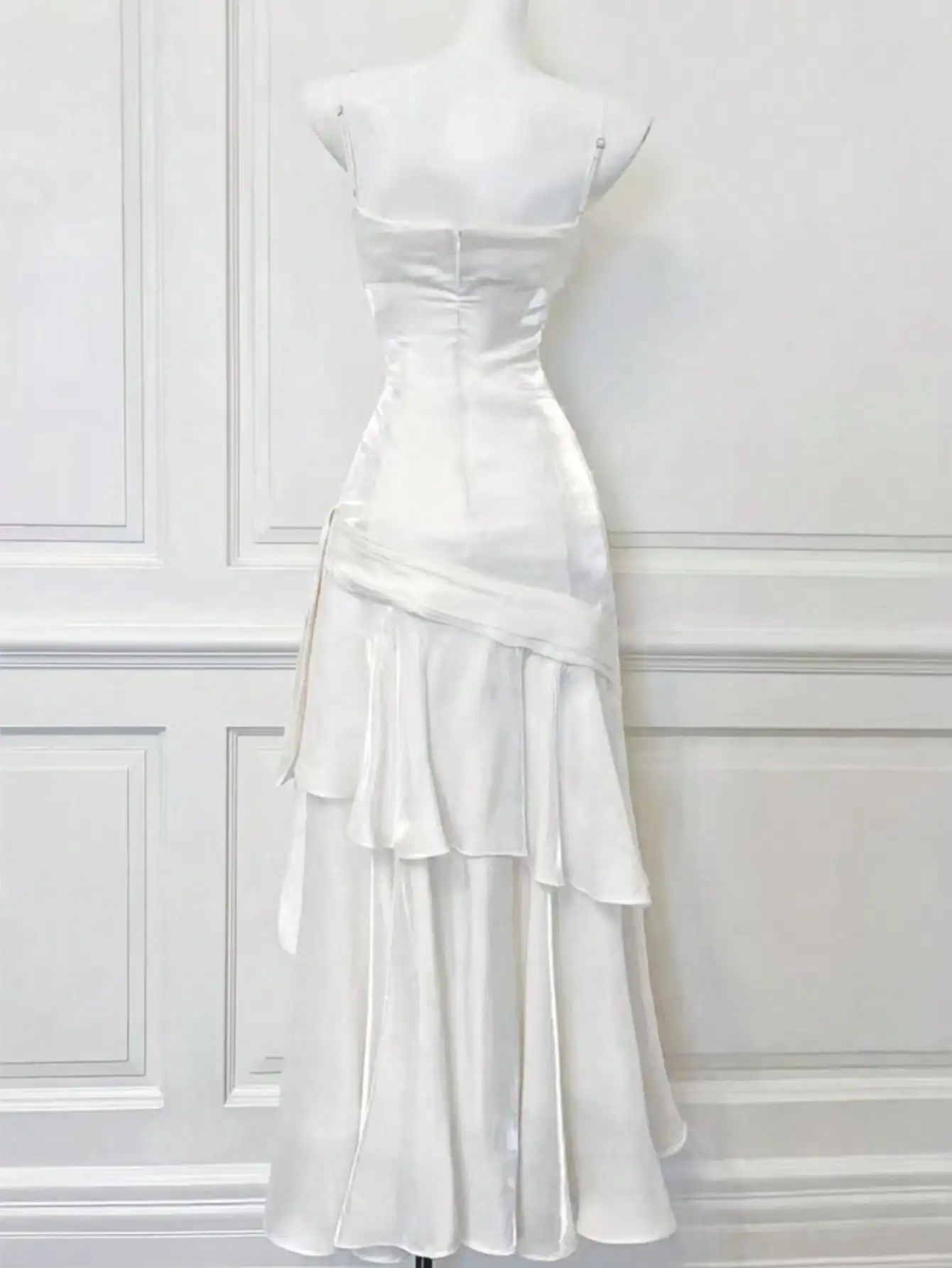 Hnewly Women Elegant Spaghetti Straps Ruffles Graduation Party Dress Slim Waist Wedding Bridesmaid Dresses Festival Formal Clothes New