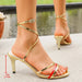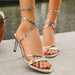 Hnewly Women Gold Heeled Sandals Special Heel Fashion Square Toe Simple Buckle High Heels