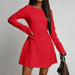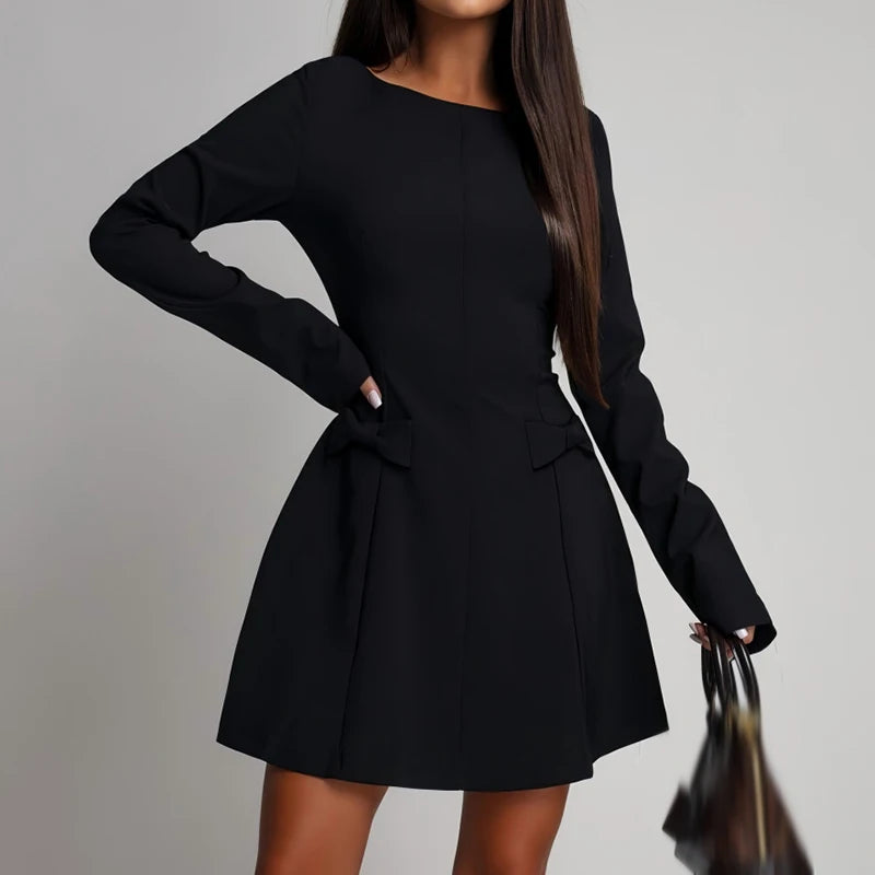 Hnewly Women O-neck High Waisted Casual Autumn Dress, Elegant Slim Fit Long Sleeved Office Short Dresses Sexy Small Black Dress