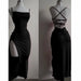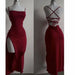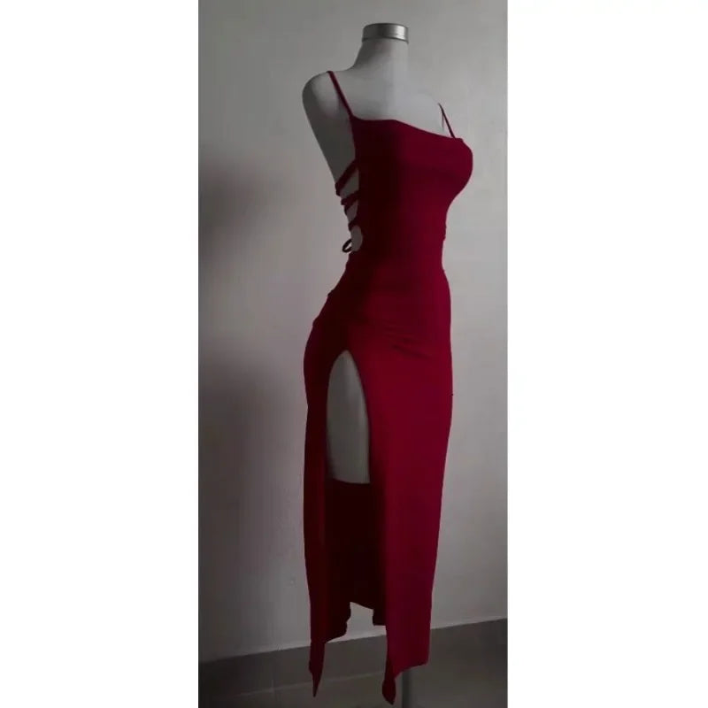 Hnewly Women Sexy Red Party Midi Dress Lace-up Irregular Split Long Dress Summer Halter Strap Spice Girl Bag Hip Clothes Solid