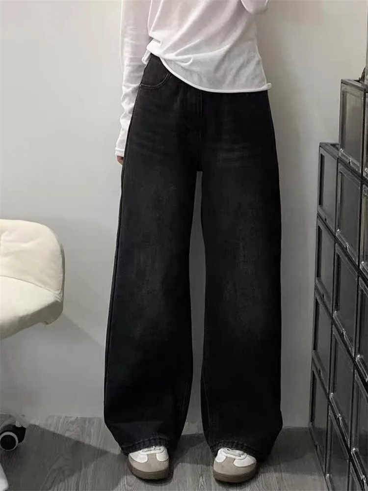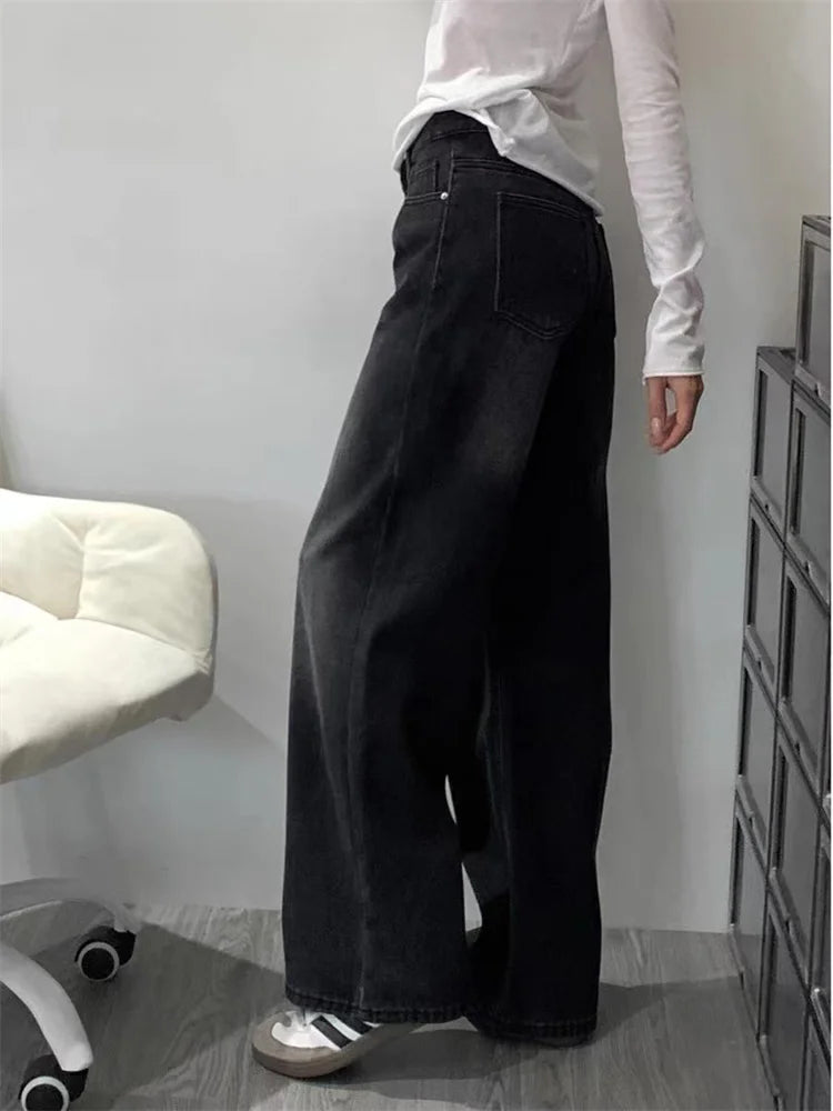 Hnewly Women's American Wide Leg Jeans - High Waist Black Gray Denim Pants Straight Leg Oversized 90s Long Trousers