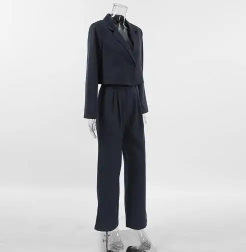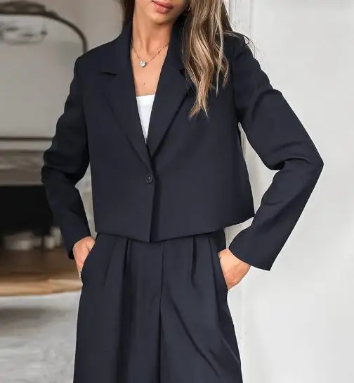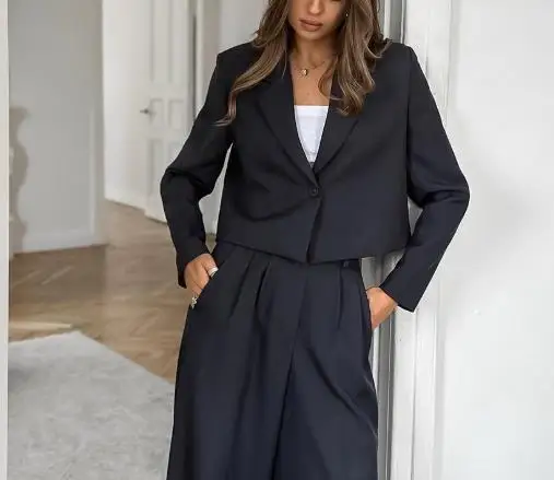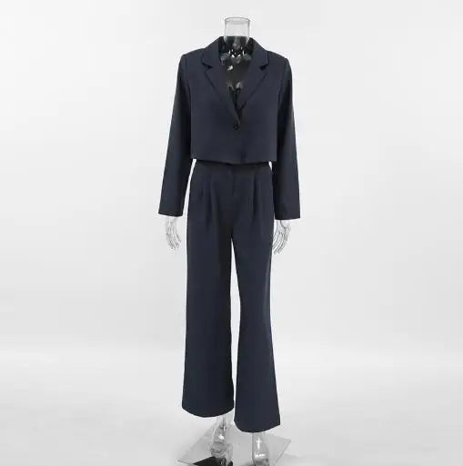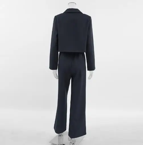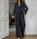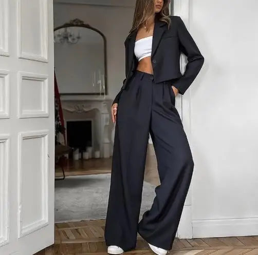 Hnewly Women's Classic Two - Piece Set: Suit Collar Long Sleeved Casual Blazer and Loose High Waisted Elastic Band Long Pants
