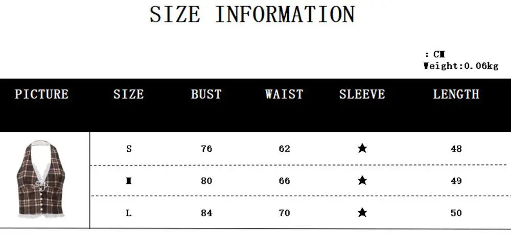 Hnewly Women's Halterneck Plaid Print Crop Top V-neck Backless Lace Slim Tank Top with Bow Embellishment