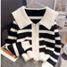 Hnewly Women's Knitted Stripe Sweater Sweet Preppy Style Peter Pan Collar Cardigan Top Spring Autumn New Zipper Fashion Outwear