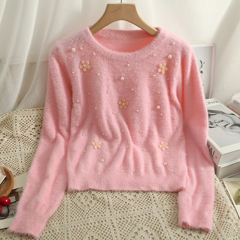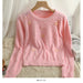 Hnewly Women's Short Sweater Autumn Winter Fashion Beaded Slim Long Sleeve Pullover Korean Versatile O-neck Loose Knitted Tops
