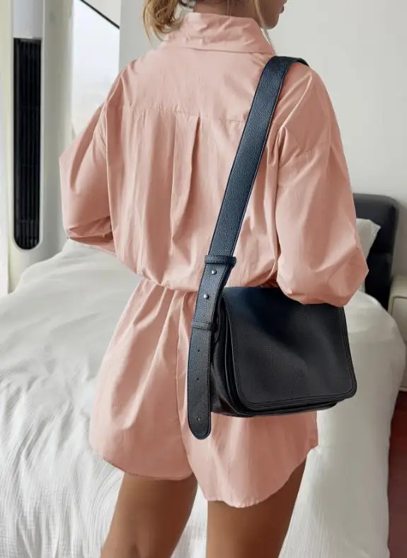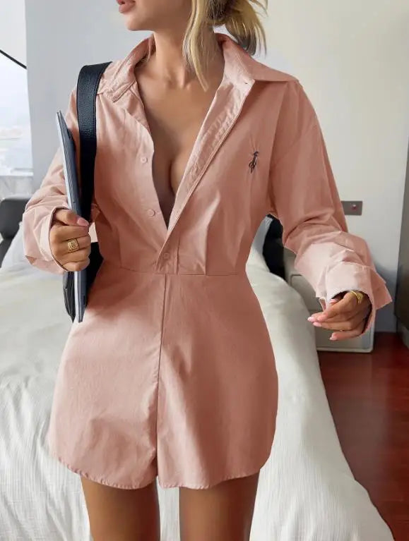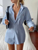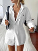 Hnewly Women's Spring and Autumn Casual Button-Up Shirt Jumpsuit Stylish Relaxed-Fit Long Sleeved Short Pants Jumpsuit