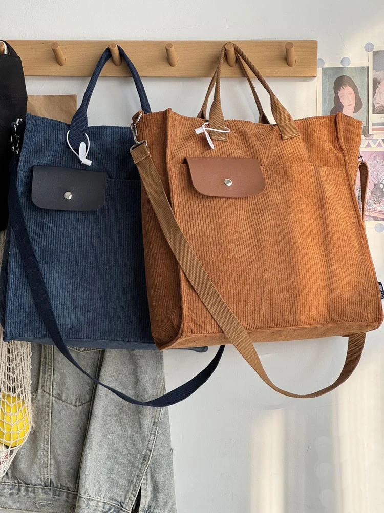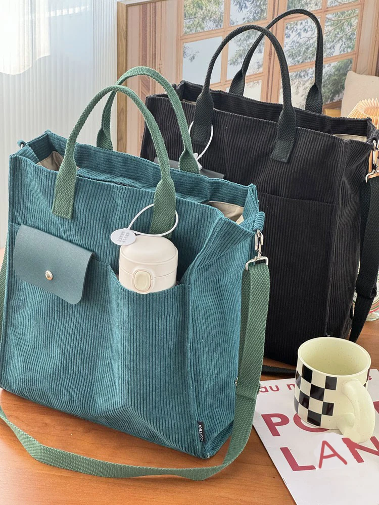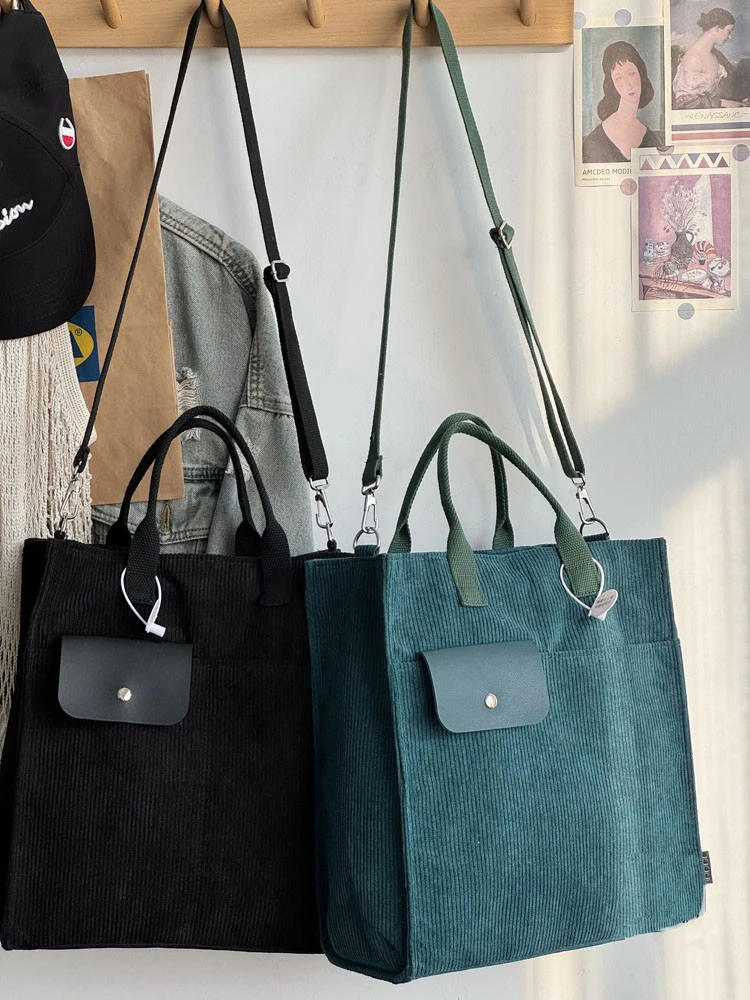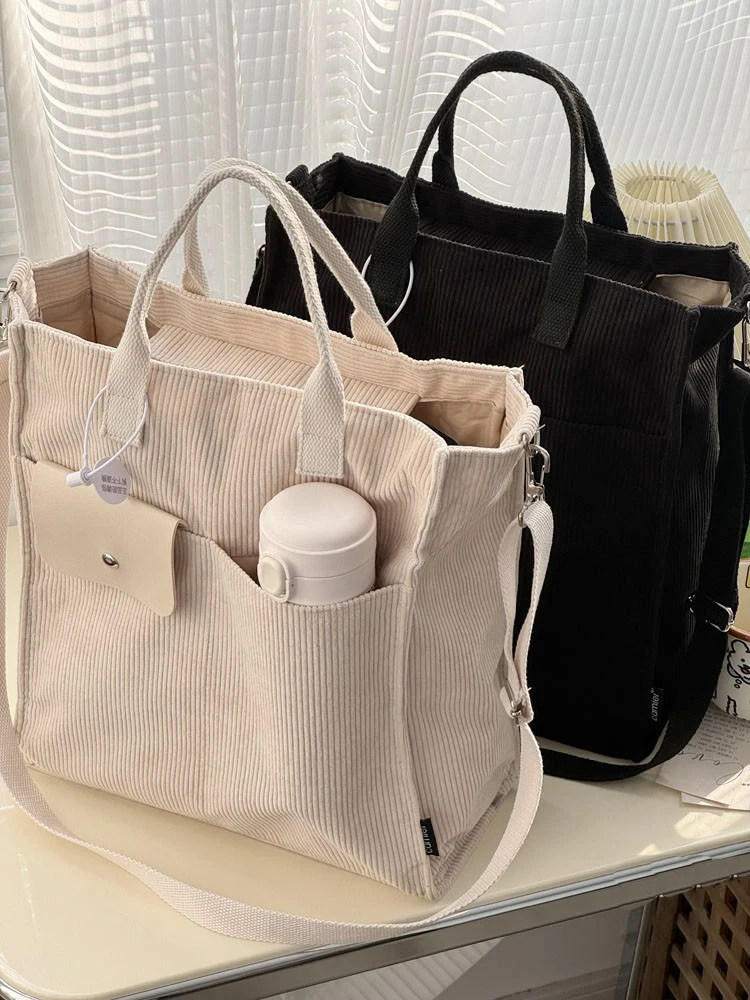 Hnewly Women's Square Portable Shoulder Bag Fashion Corduroy Crossbody Bags Daily Casual Tote Simple Handbag