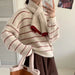 Hnewly Women's Striped Sweater with Scarf Chunky Knit Loose-fit V-Neck Pullover Striped Jumper Ladies Autumn Winter Classic Chic Outfit
