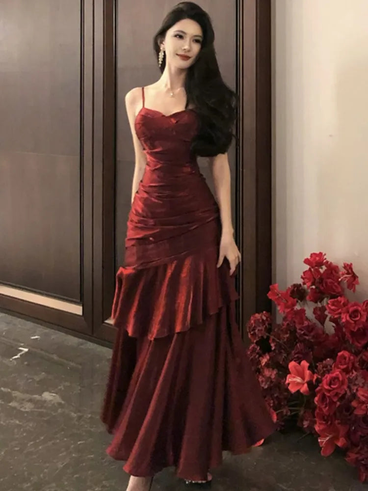 Hnewly Women's Summer Ruffles Birthday Party Dress Sexy Spaghetti Strap Sleeveless Evening Dresses Female Slim Prom Vestidos Long Robe