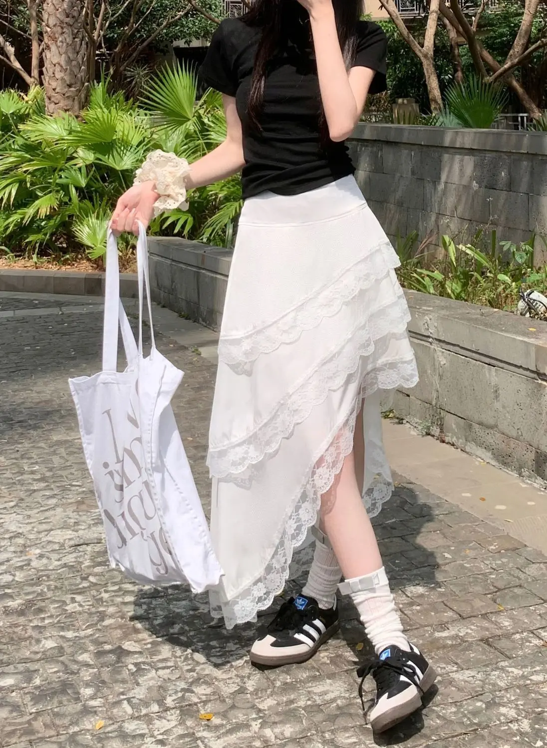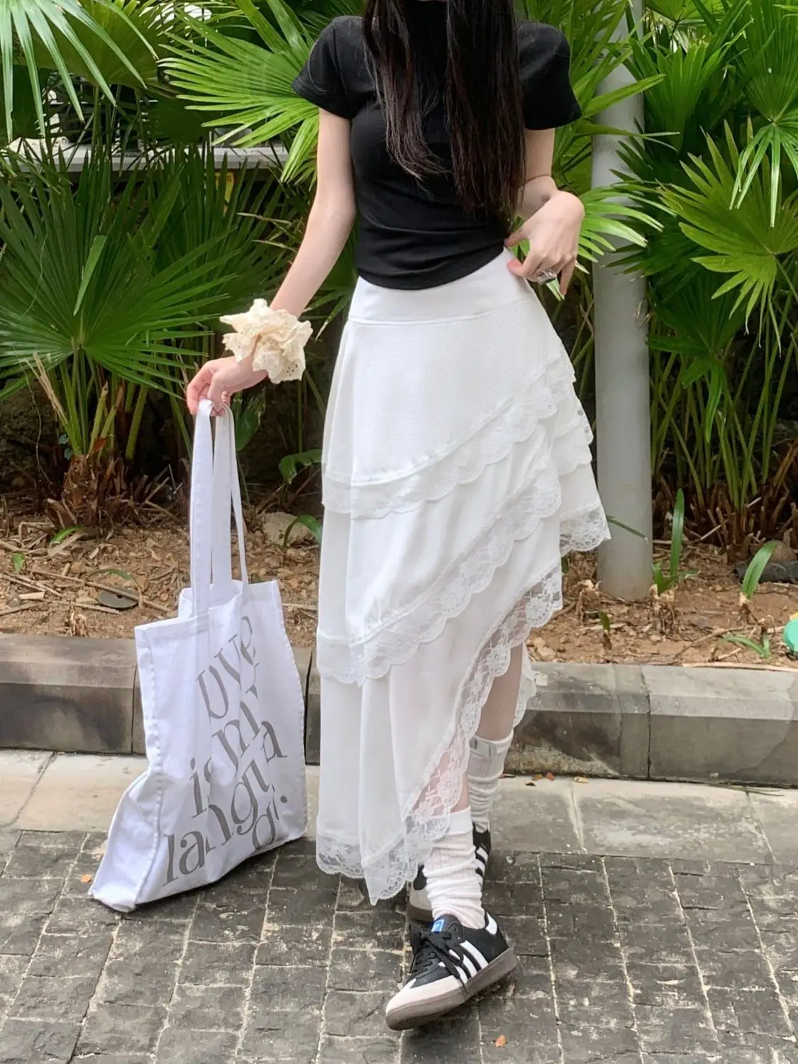Hnewly Women's Summer Skirt Irregular Cake Skirt Medium length Skirt