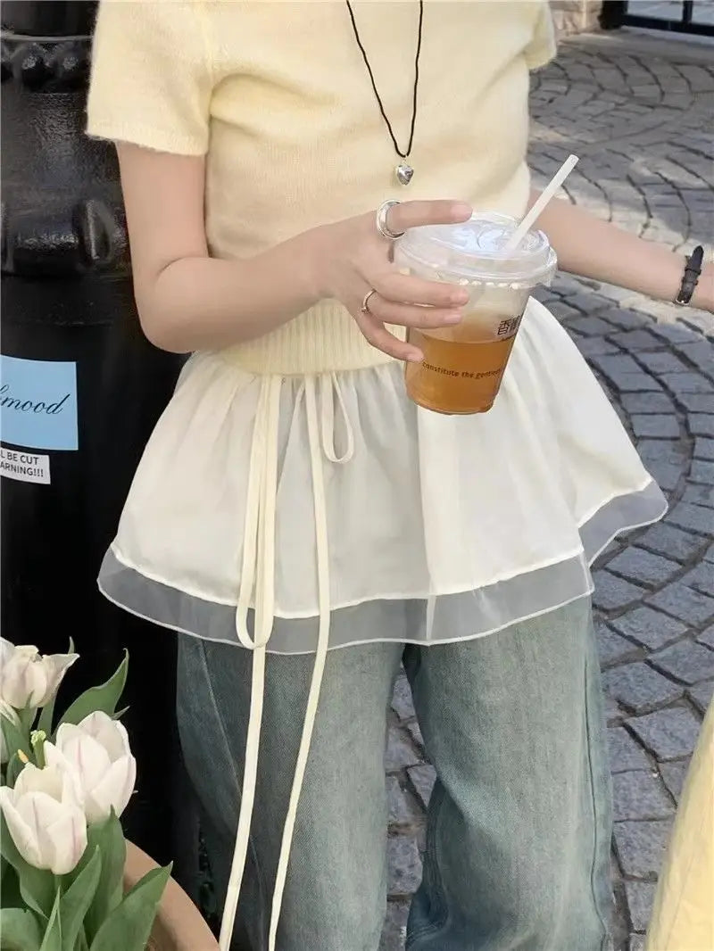 Hnewly Women's Summer Stacked Mesh Bottom Covering Butt Curtain Strap Half Skirt Apron Short Skirt