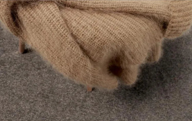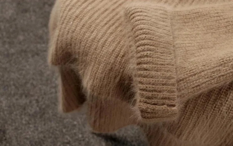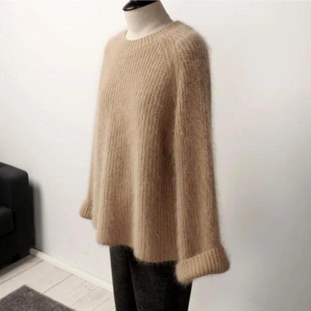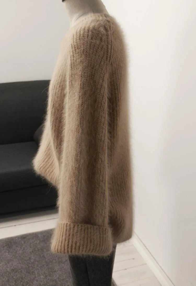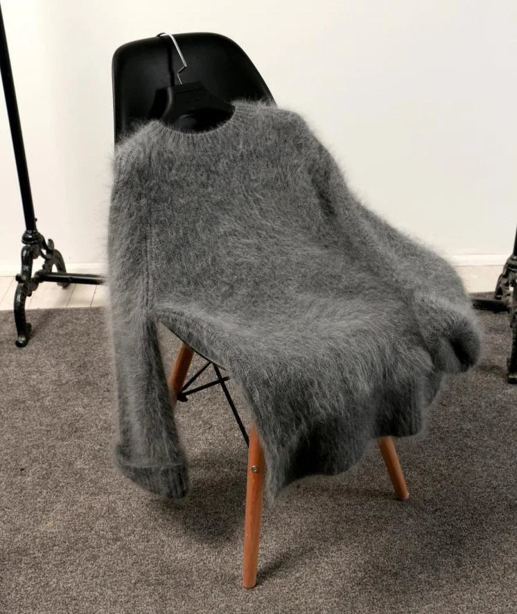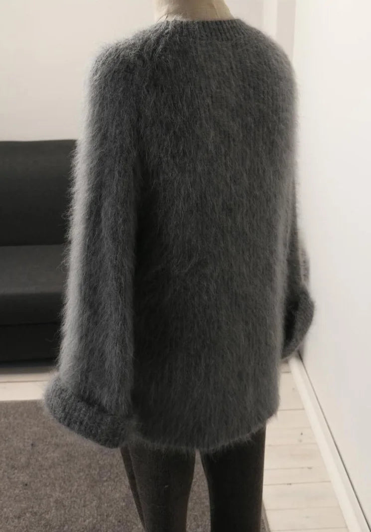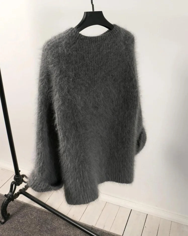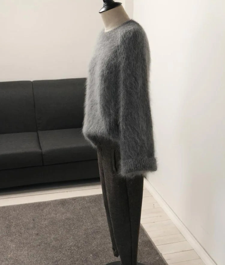 Hnewly Women's Thickened O-Neck Mohair Pullover Sweater New Winter Pure Color Female Loose Knitwear Long Sleeve Asymmetry Knit Top