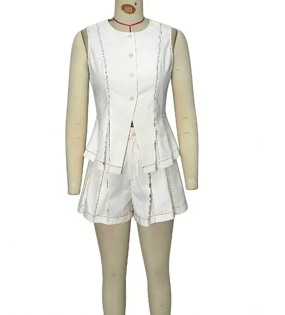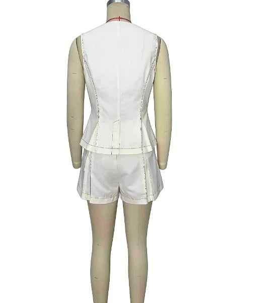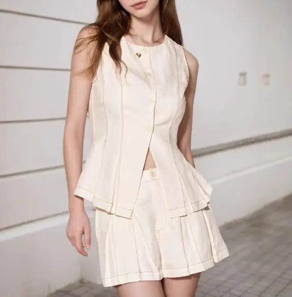 Hnewly Women's Versatile Vest Shorts Set Sleeveless Button Front Vest and Pleated Shorts Cute Minimalist Two Pieces Set