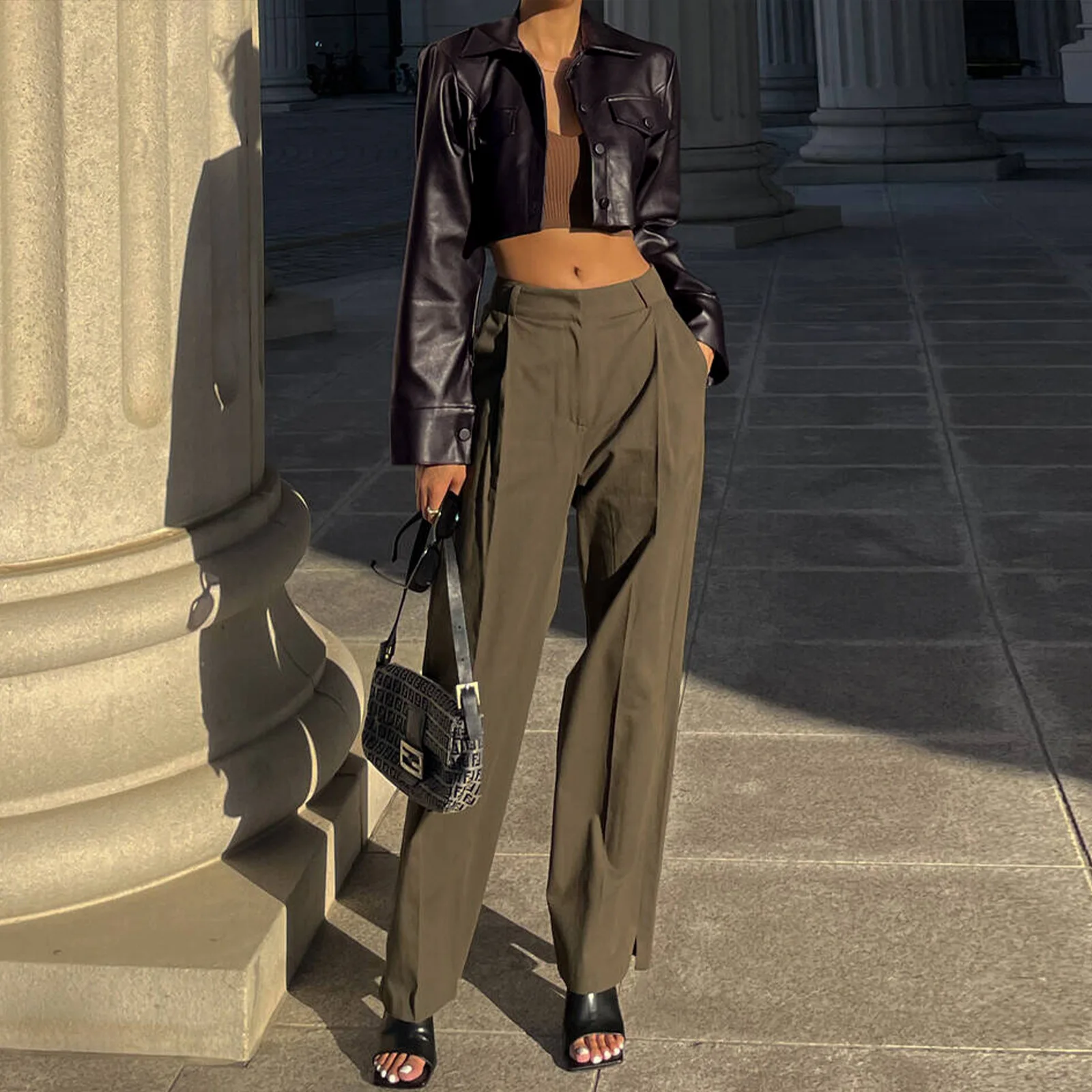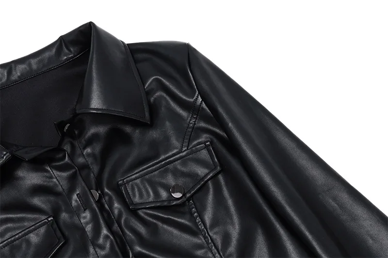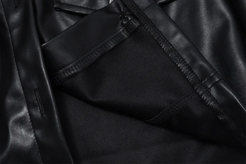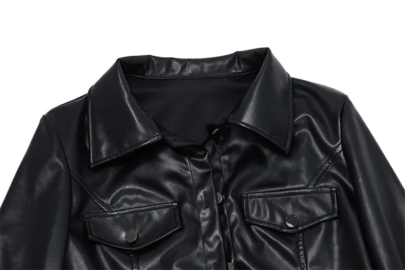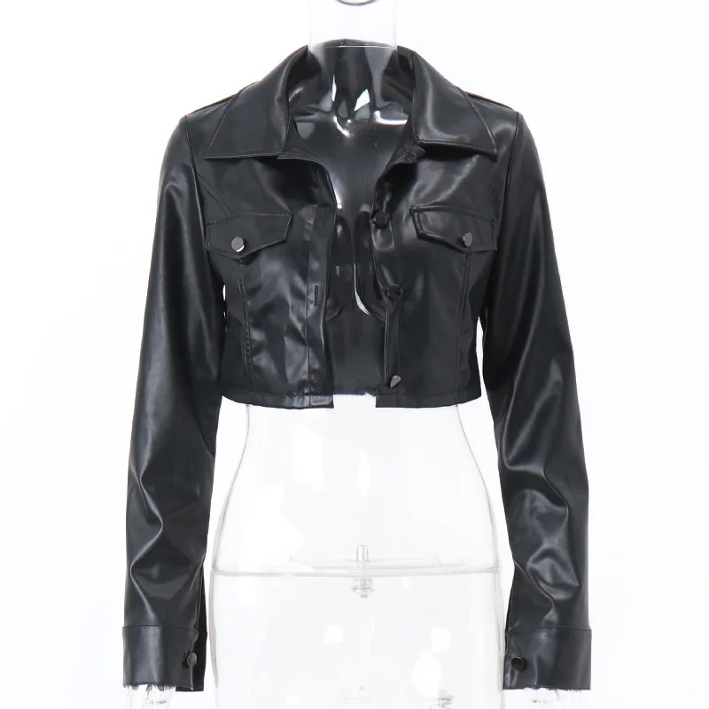 Hnewly Women's Y2K Short Jacket Faux Leather Turn-down Collar Button Decorated PU Grunge Street Casual Fashion Coat