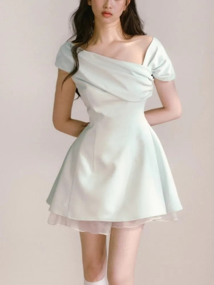 Hnewly Women's Y2K Vintage Chic Dresses Summer 2025 New Asymmetrical Neck A-Line Inclined Shoulder Vestidos Party Prom Evening Dress