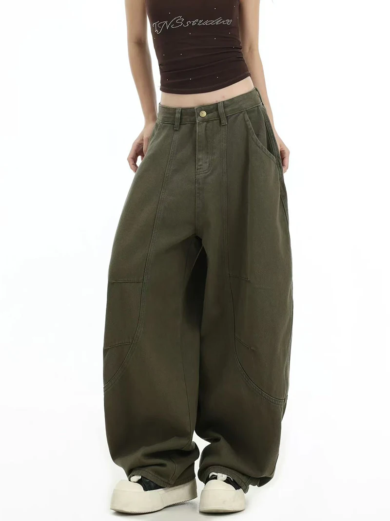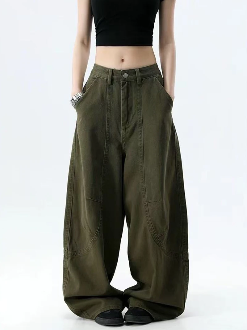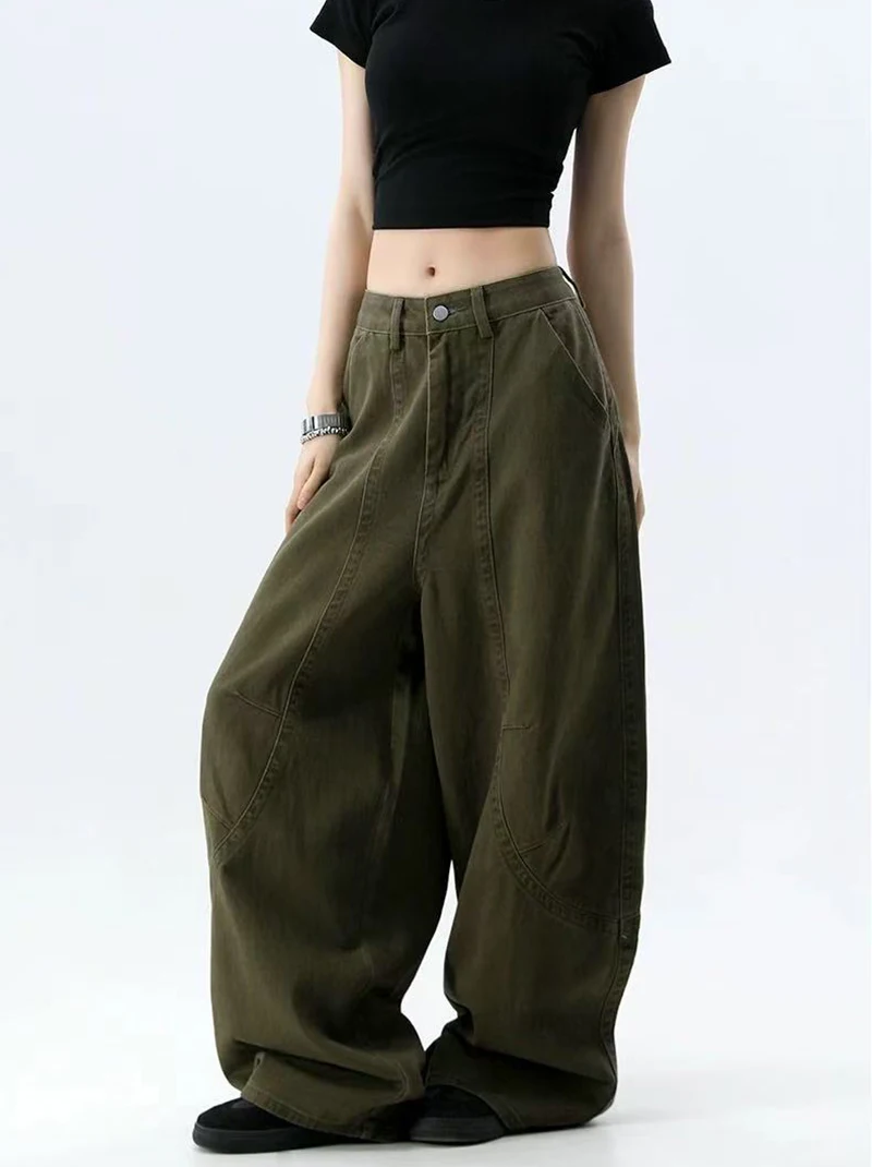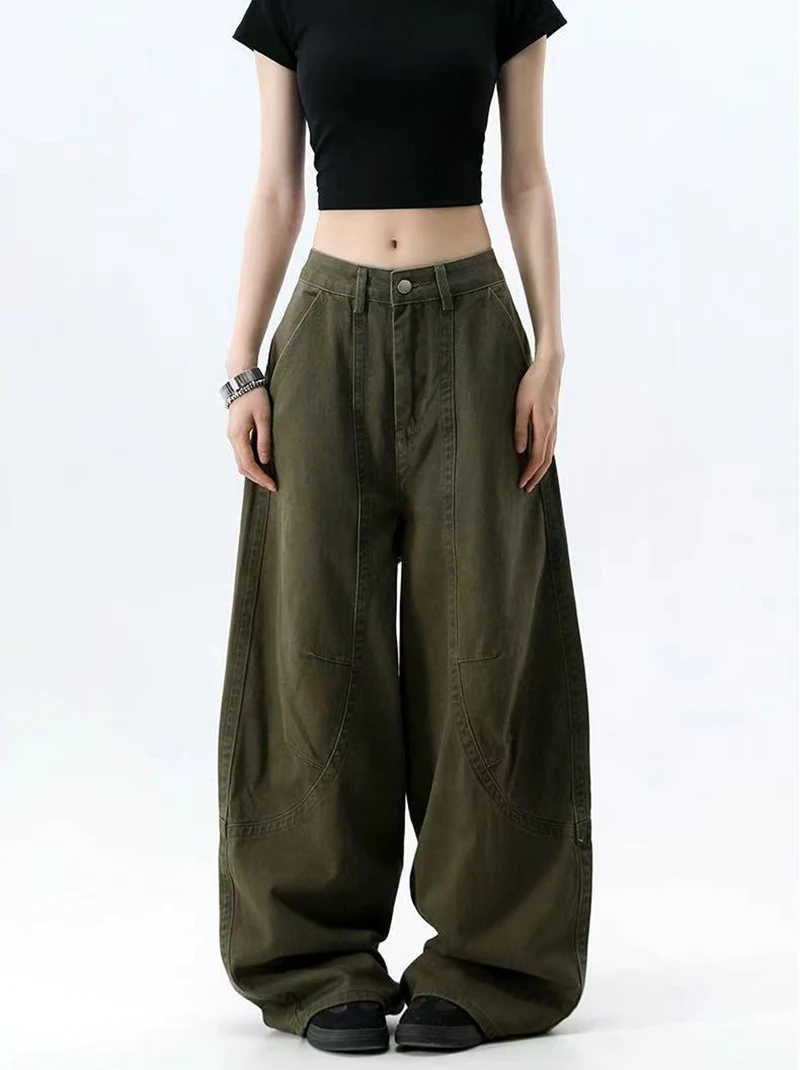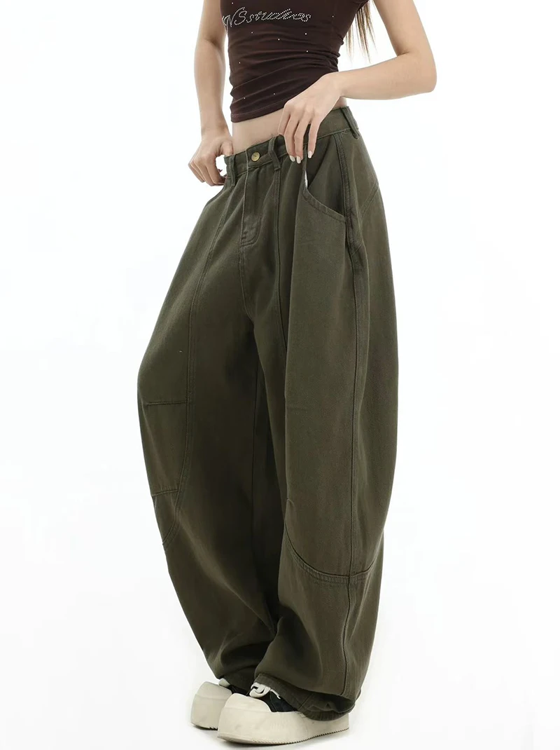 Hnewly Y2K American Retro Cargo Jeans Women High Waist Streetwear Loose Wide Leg Denim Pants Bf Hip Hop All Match Straight Pants New