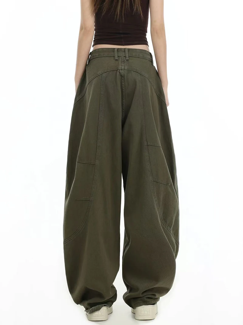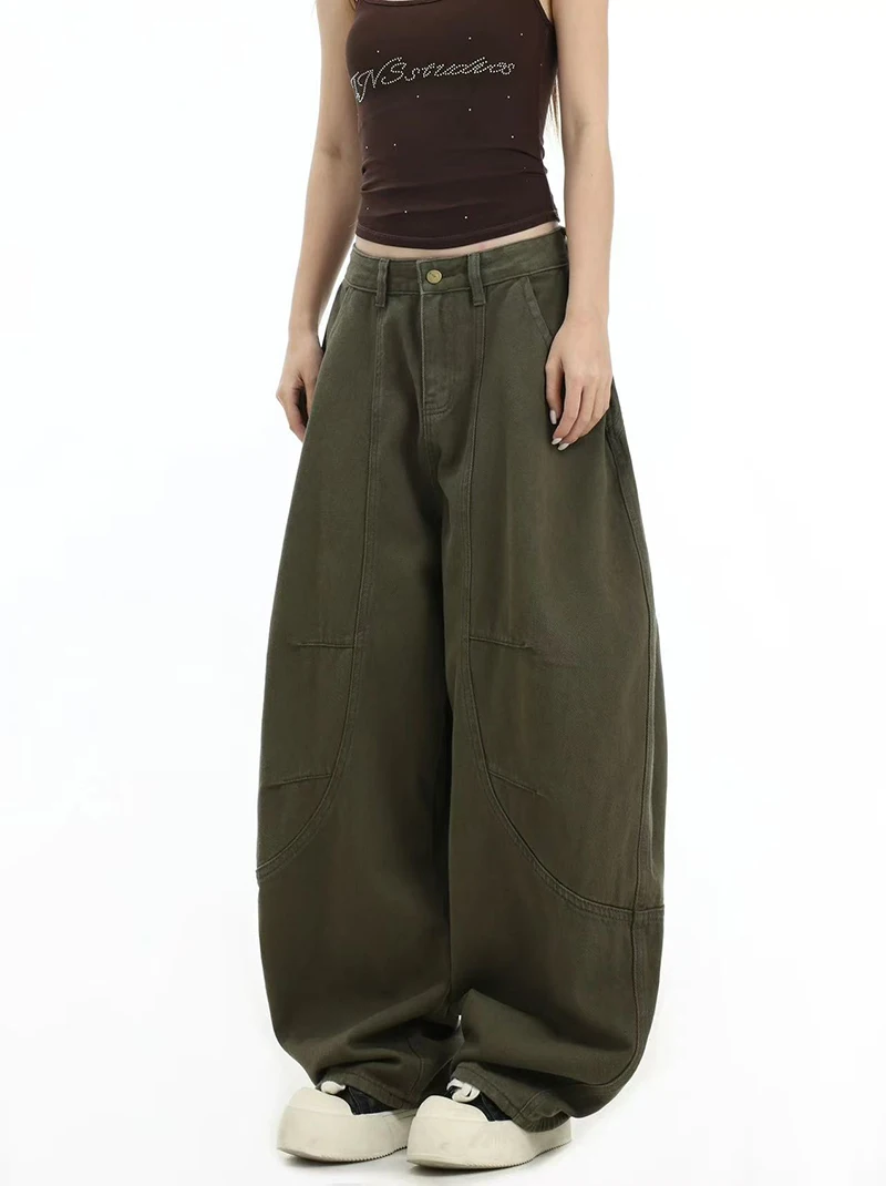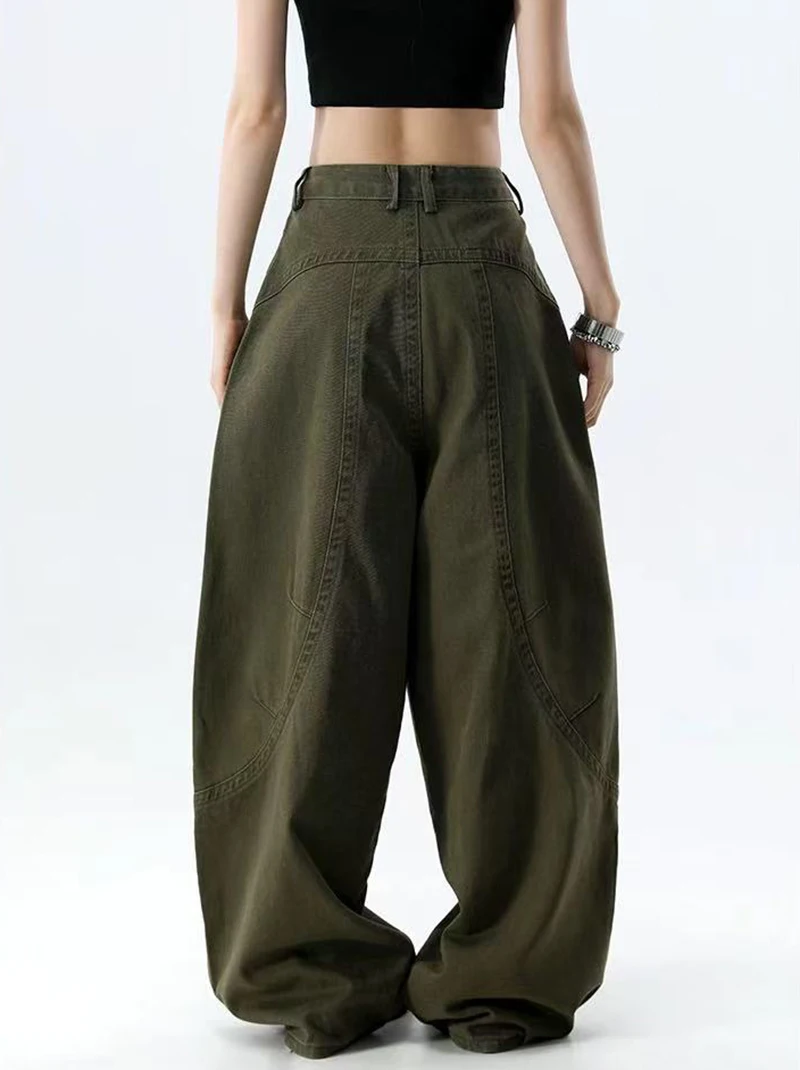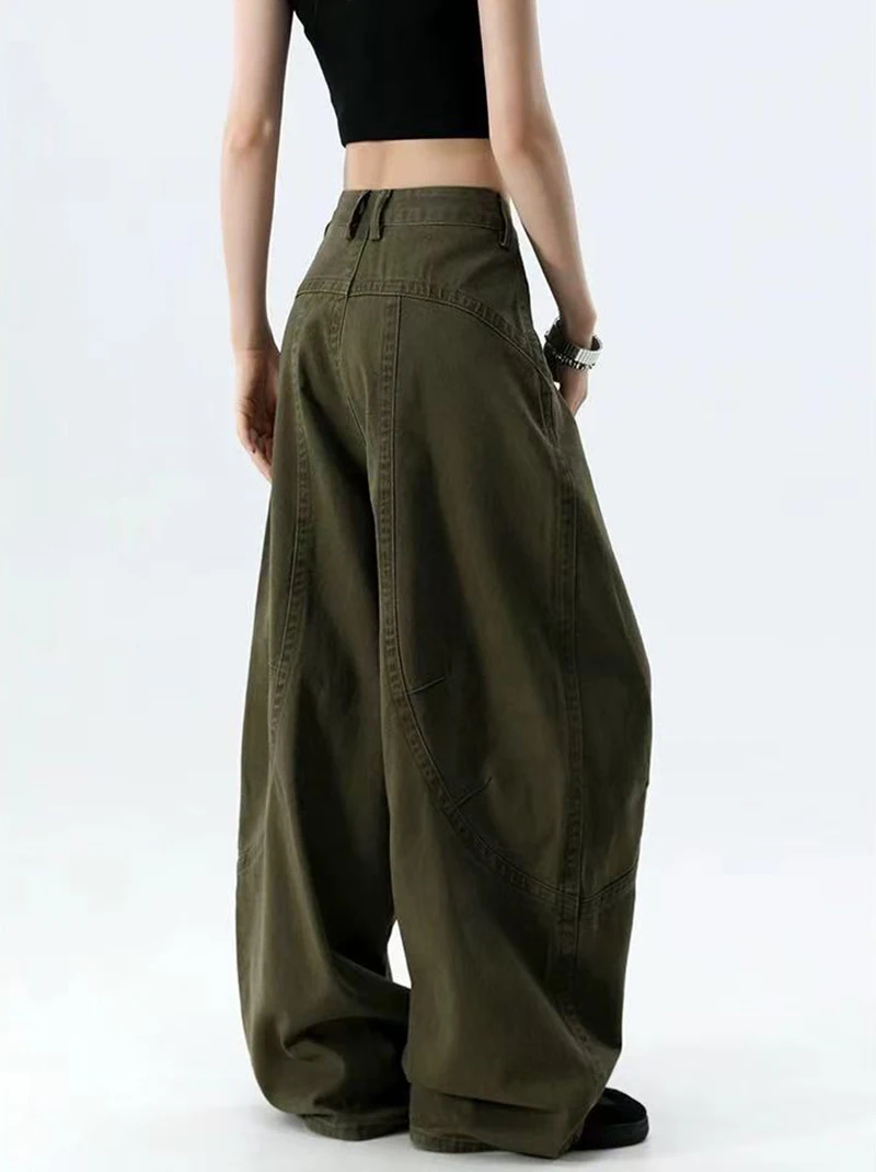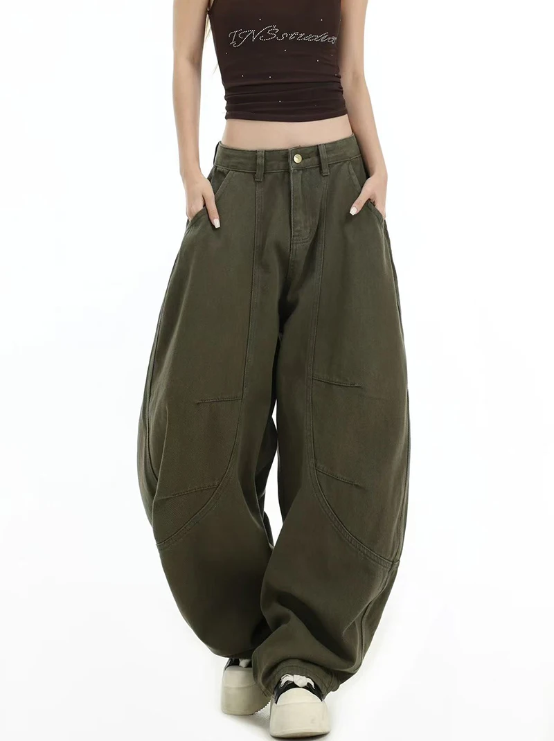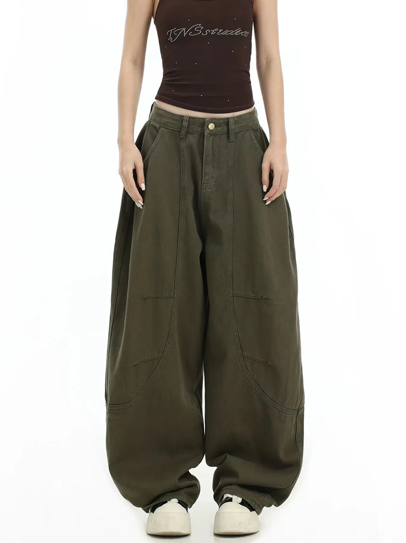 Hnewly Y2K American Retro Cargo Jeans Women High Waist Streetwear Loose Wide Leg Denim Pants Bf Hip Hop All Match Straight Pants New