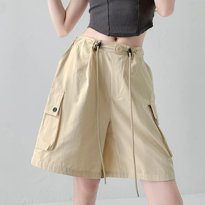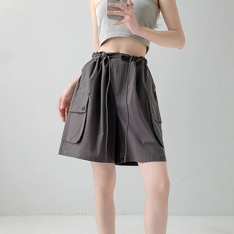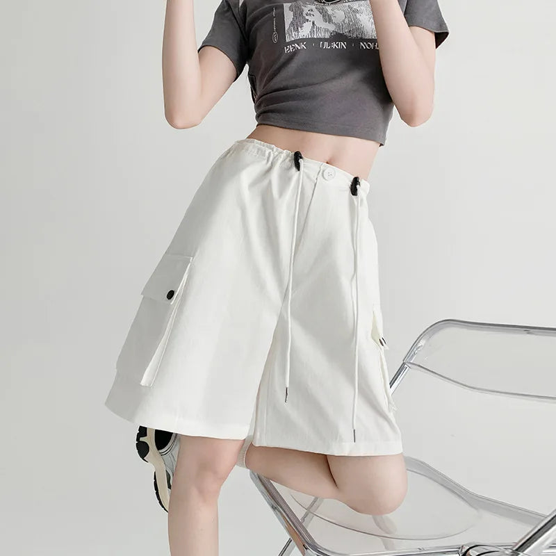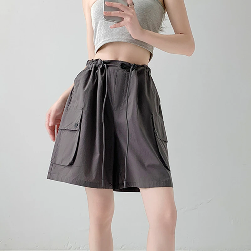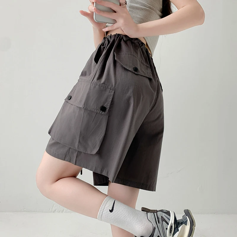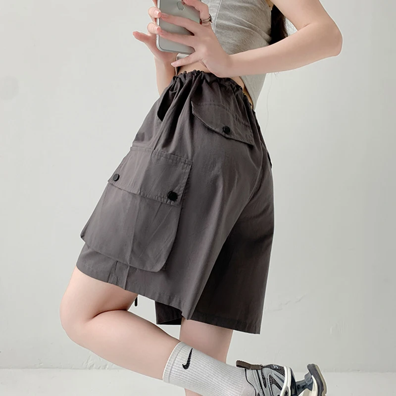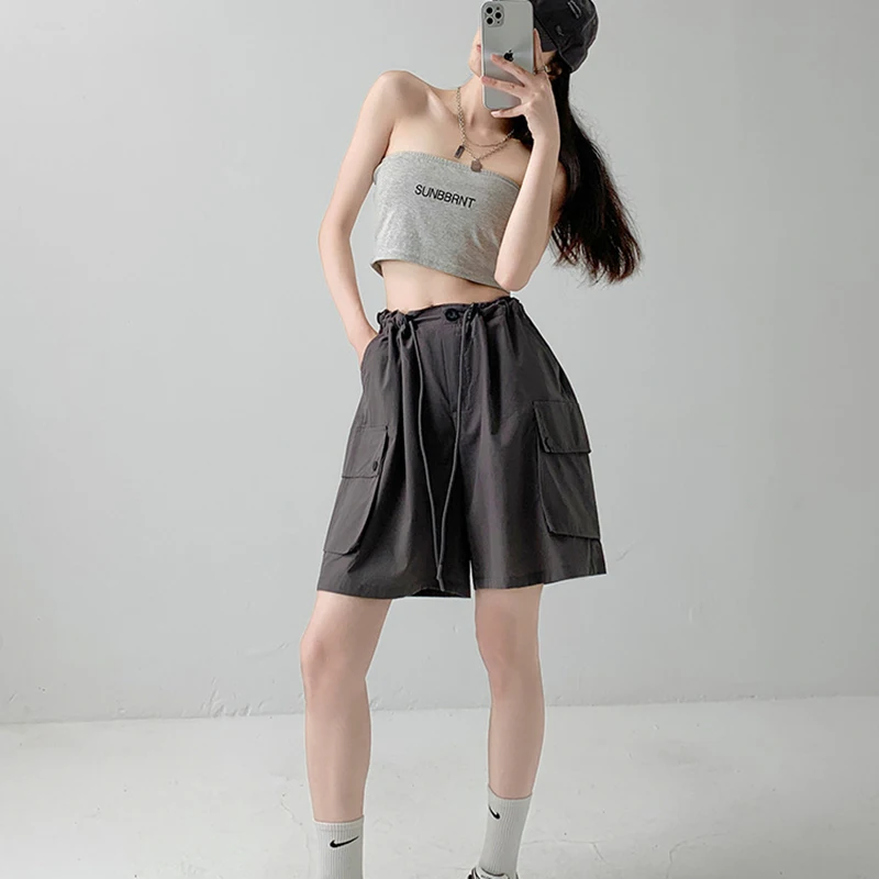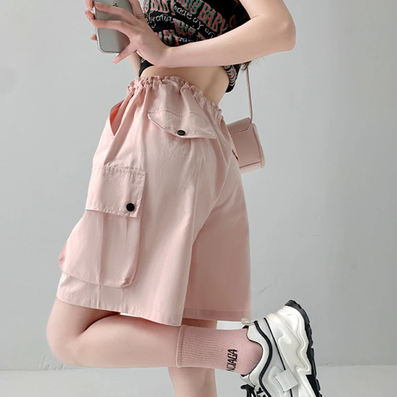 Hnewly Y2K Cargo Shorts Women Harajuku Black Oversized Wide Leg Shorts Summer New Streetwear Fashion High Waist Baggy Short Pants New