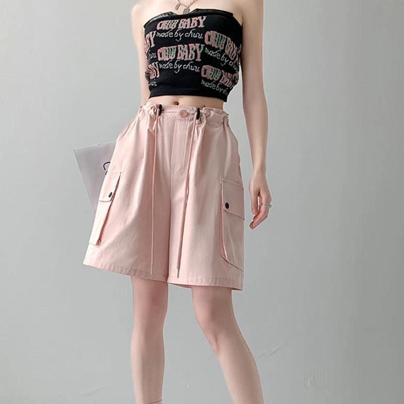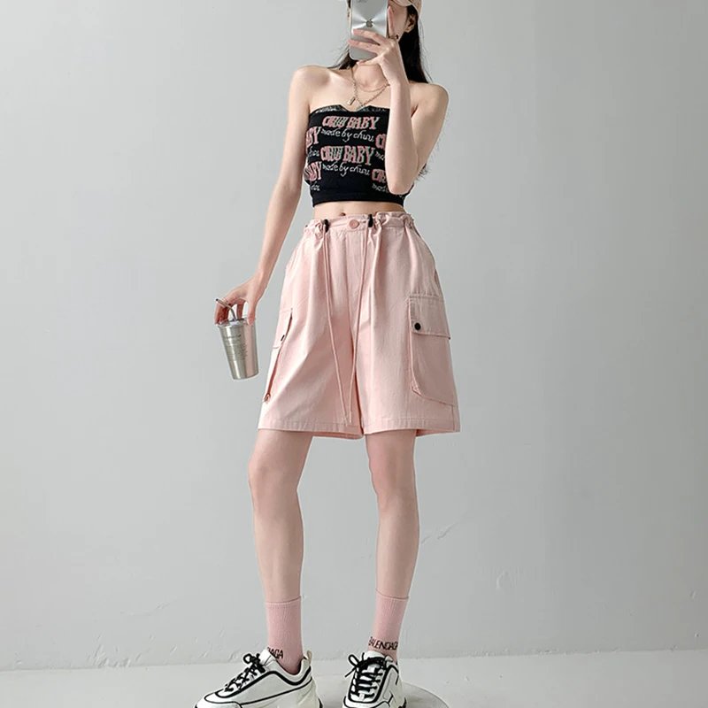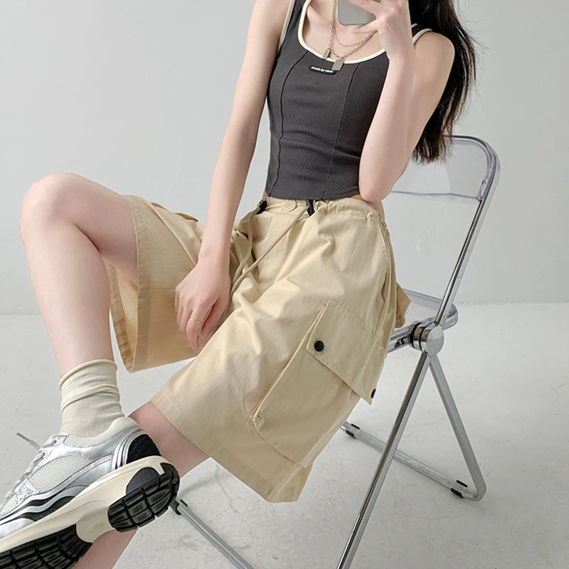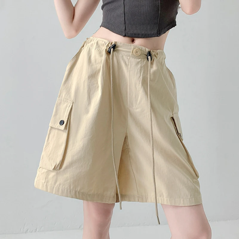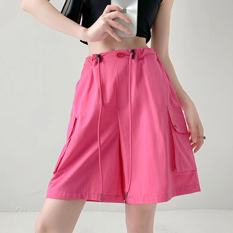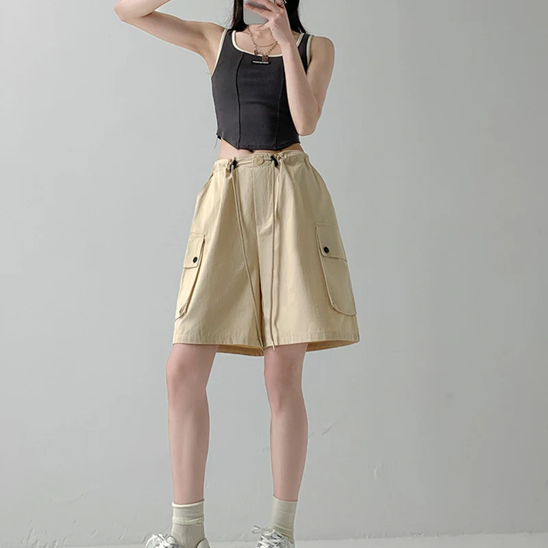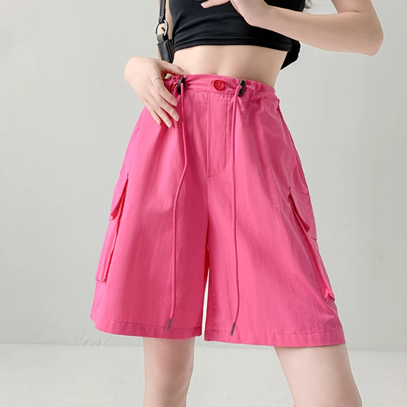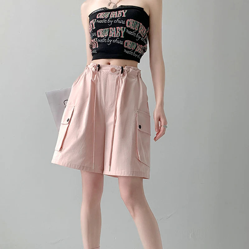 Hnewly Y2K Cargo Shorts Women Harajuku Black Oversized Wide Leg Shorts Summer New Streetwear Fashion High Waist Baggy Short Pants New