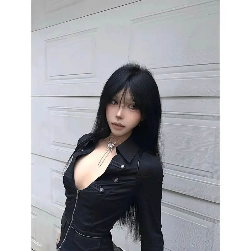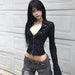 Hnewly Y2k Fashion Sexy V-neck Slim Fit Top for Women Casual All-match Long Sleeve Blusas Mujer 2025 Spring New Black Blouses