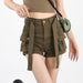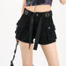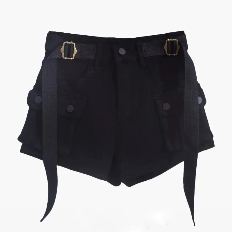 Hnewly Y2K Summer Solid Women Denim Shorts American Street Pockets Female Jeans Fashion New All Match Belt Button Ladies Cargo Shorts