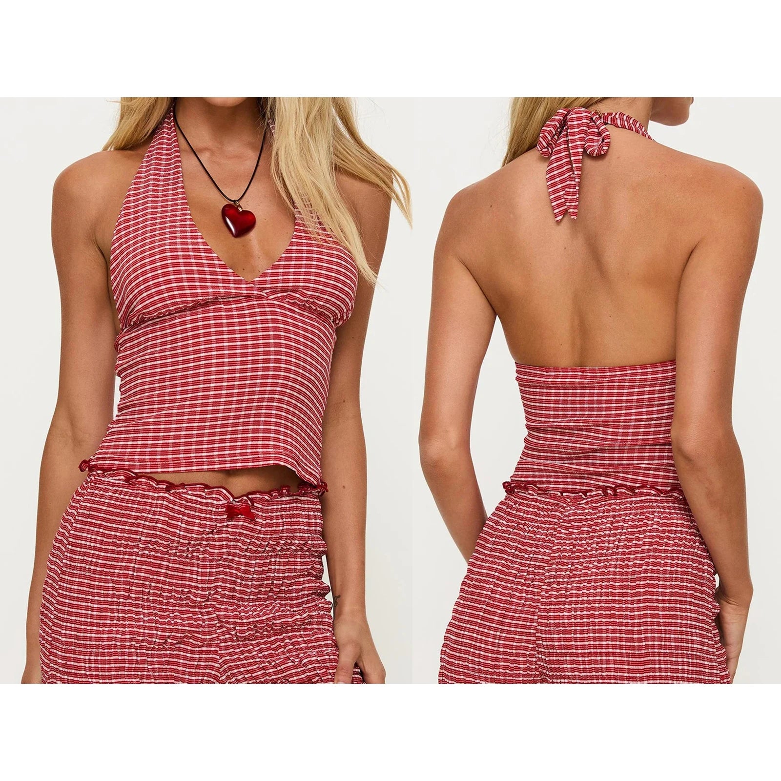 Hnewly y2k Tank Top Women's Summer Clothing Plaid Print Sleeveless Open Back Halter Neck Vest 2000s T Shirt Party Clothes