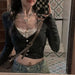Hnewly Y2k V-neck Patchwork Lace Cardigan for Women Thin Long Sleeve Tops Mujer Spring Autumn New Slim Fit Knitted T-shirts
