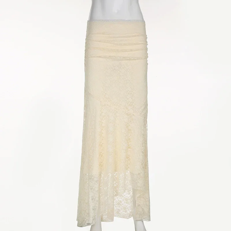 Hnewly Y2K Vintage Lace Long Skirt Women Aesthetic Fairy Stylish High Street Maxi Skirts 2024 Summer Outfits Sexy Ladies Beach Style