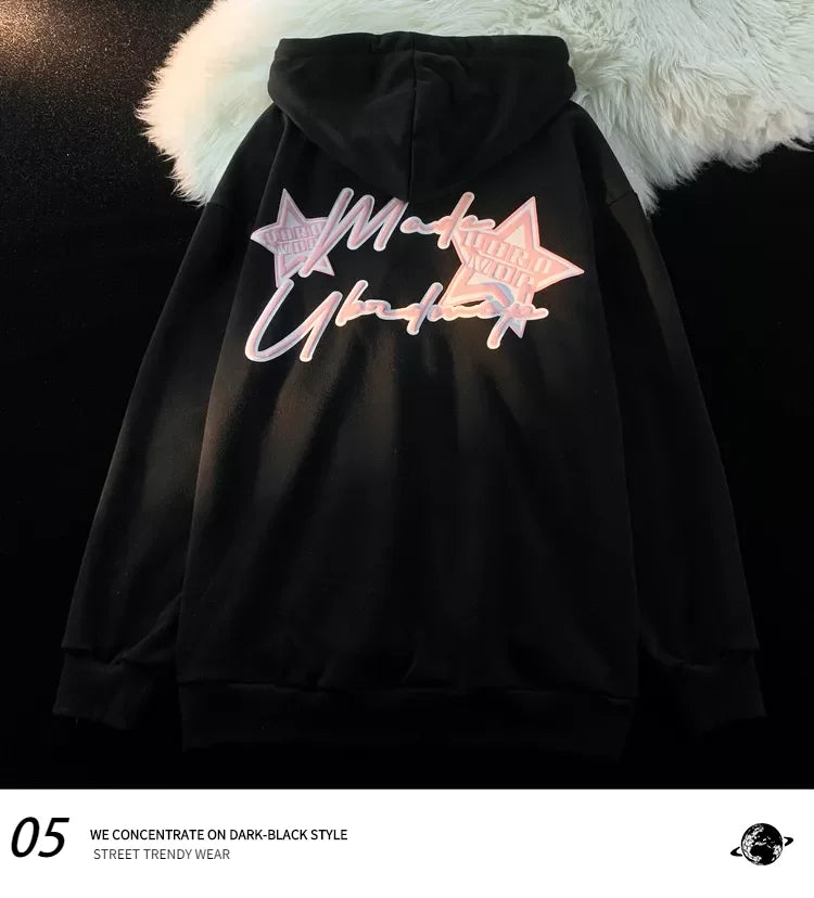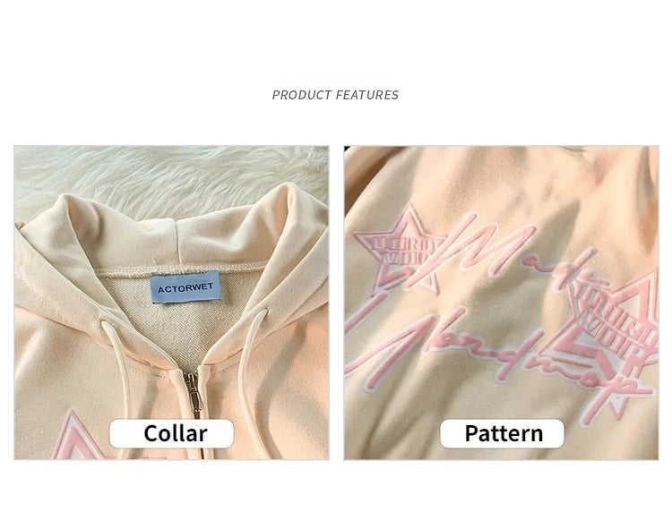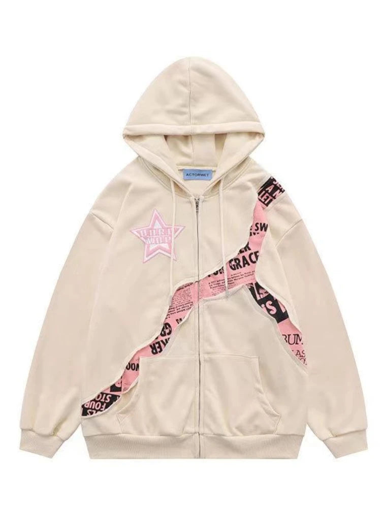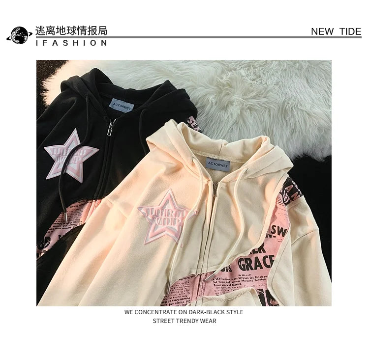 Hnewly Y2K Vintage Zip Up Hoodies Women Harajuku Hip Hop Letter Print Sweatshirts Gothic Streetwear Loose Patchwork Tops Coats