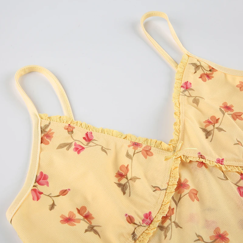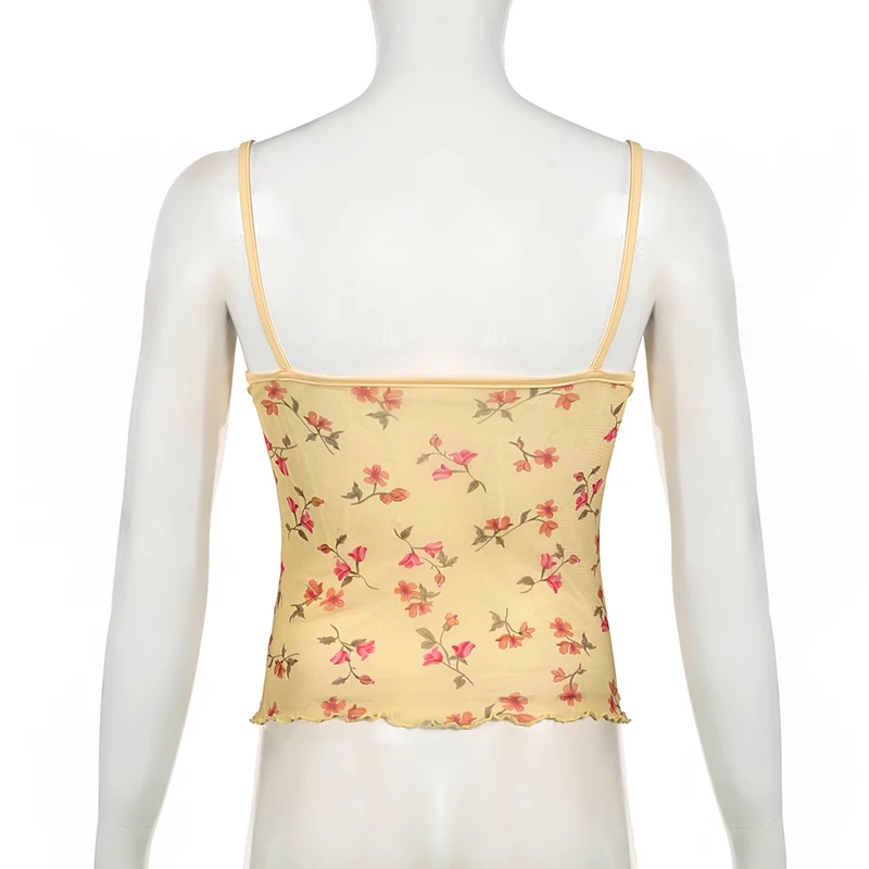 Holiday Sexy Floral Mesh Camis Tops See Through Slim Deep V-Neck Sleeveless Tank Tops Women Summer Fashion Streetwear