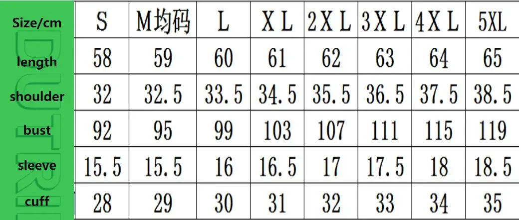 size chart/cm