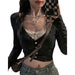 Korean Fashion Crop Top y2k Aesthetic Sweet Lace Patchwork Long Sleeve T Shirt with Bow 2000s Women Clothes Streetwear