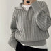 Korean Fashion Half Zipper Sweaters Women Vintage Twisted Knitted Crop Pullover Casual Sueter Mujer Long Sleeve Tops