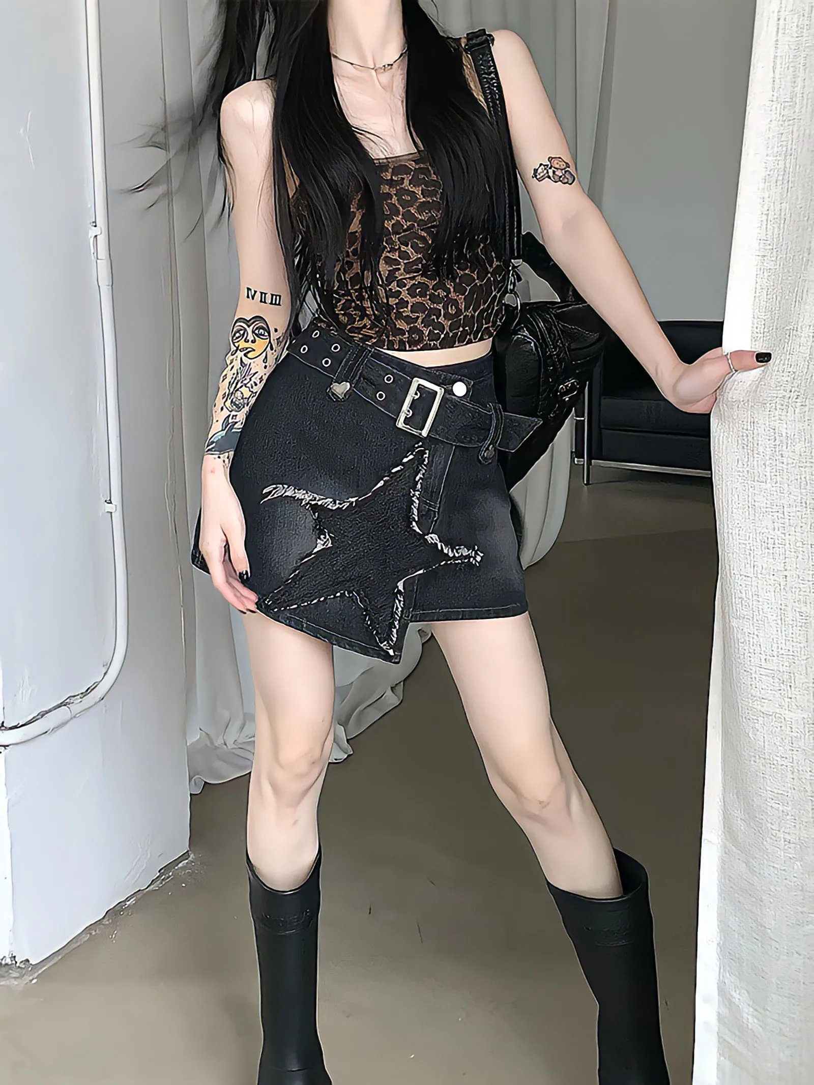 y2k vintage women korean button belted short denim mini skirts aesthetic fairy grunge high waiste jeans a-line skirt alt clothes.