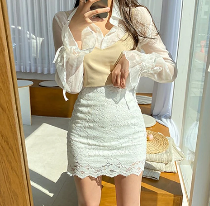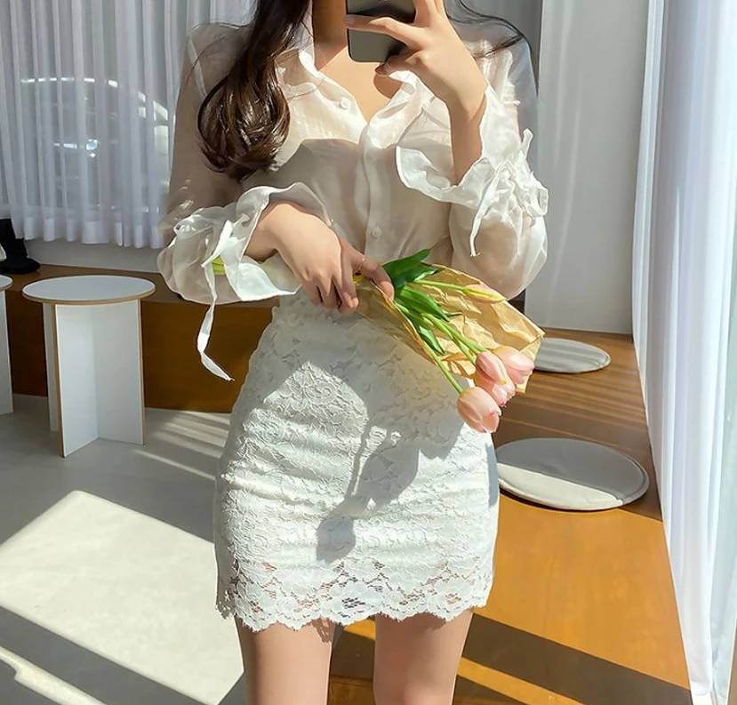 Lace Skirts for Woman Wrap White Tight Women's Skirt Midi Clothes Korean Style Premium High Quality Vintage Trend Stylish