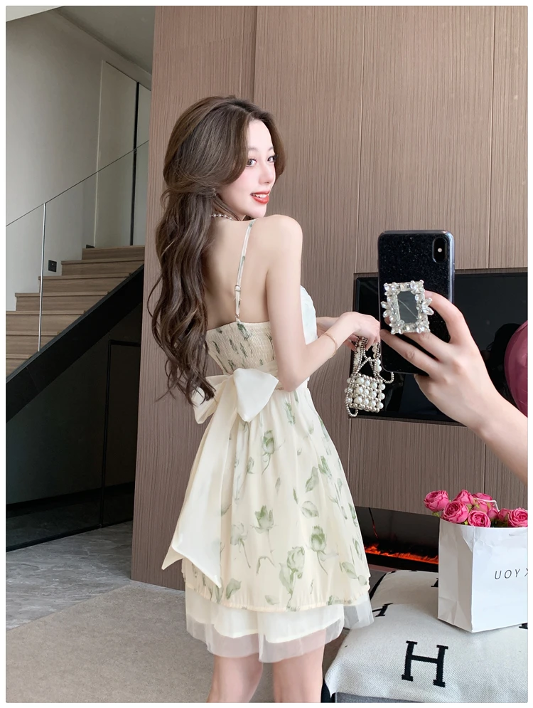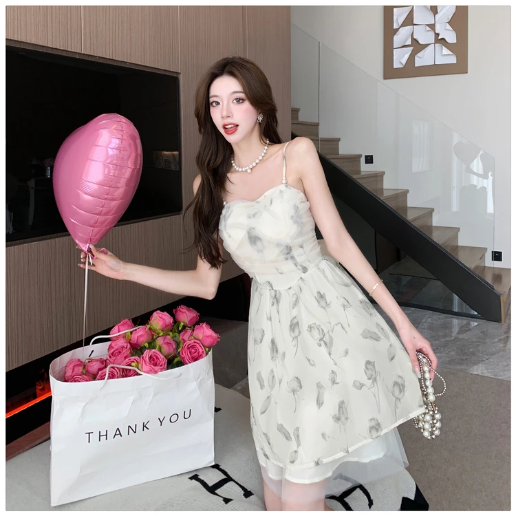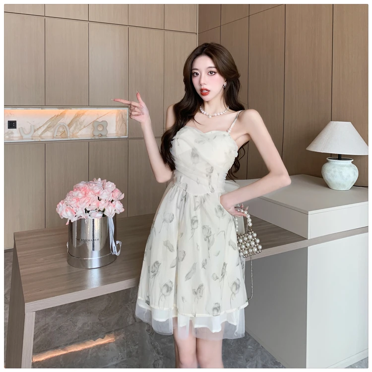 Linen Cotton Dress Women Summer Mini Dress Ladies Vintage A-line Sling Dress Sexy Hot Girl Slash Neck Camisole Ruffle Sundress