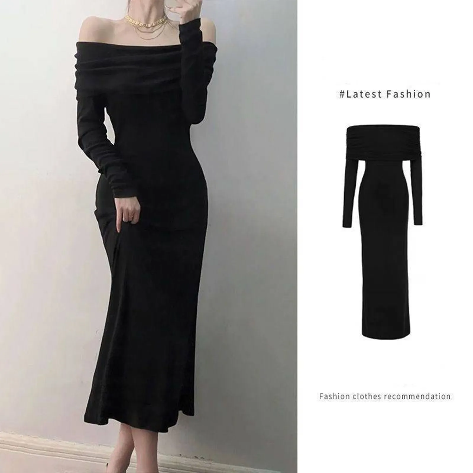 One Shoulder Style Long Sleeved Dress For Women Fashionable Slim Fit And Slimming Effect Paired With French Long Skirt For Women