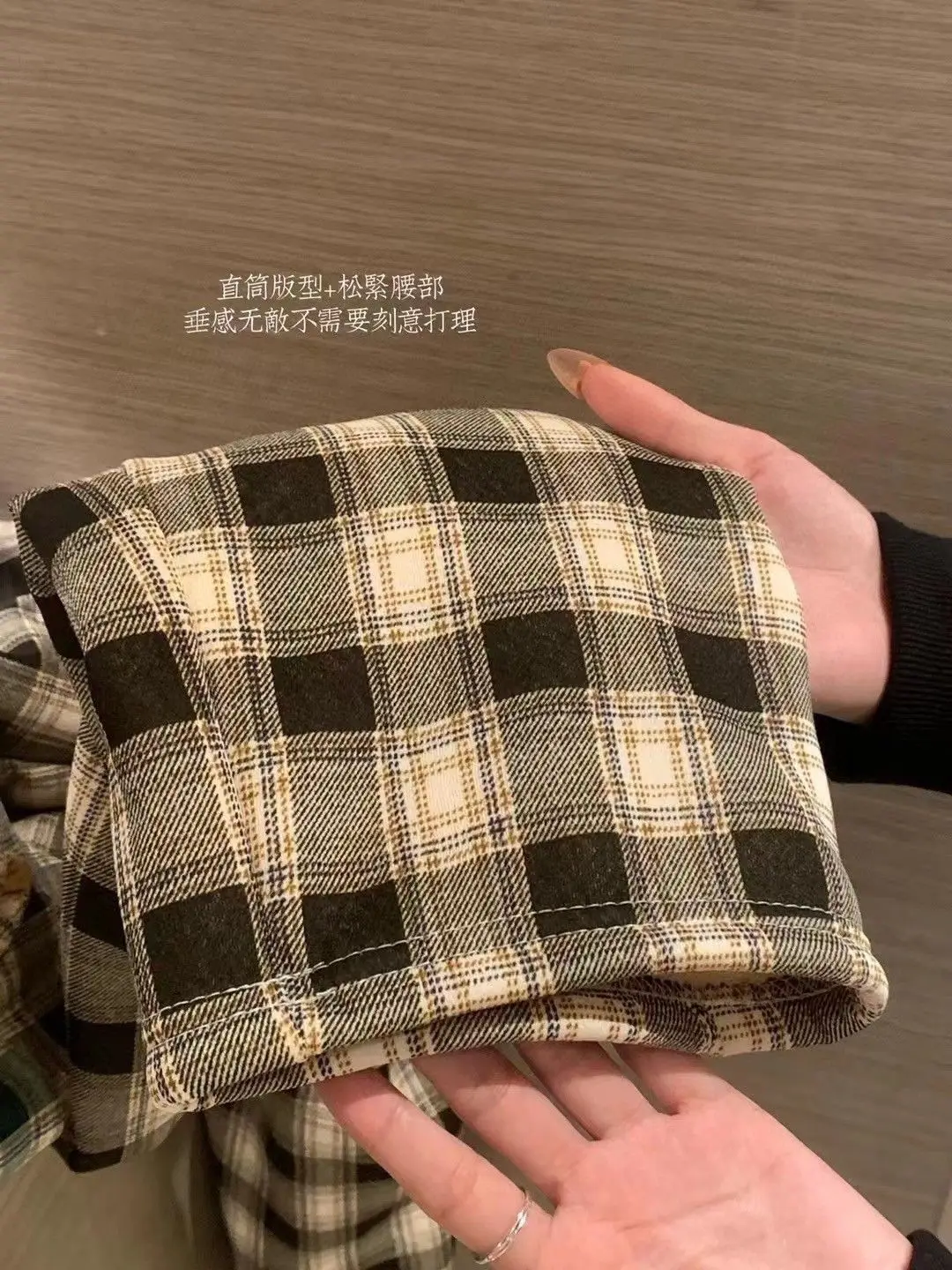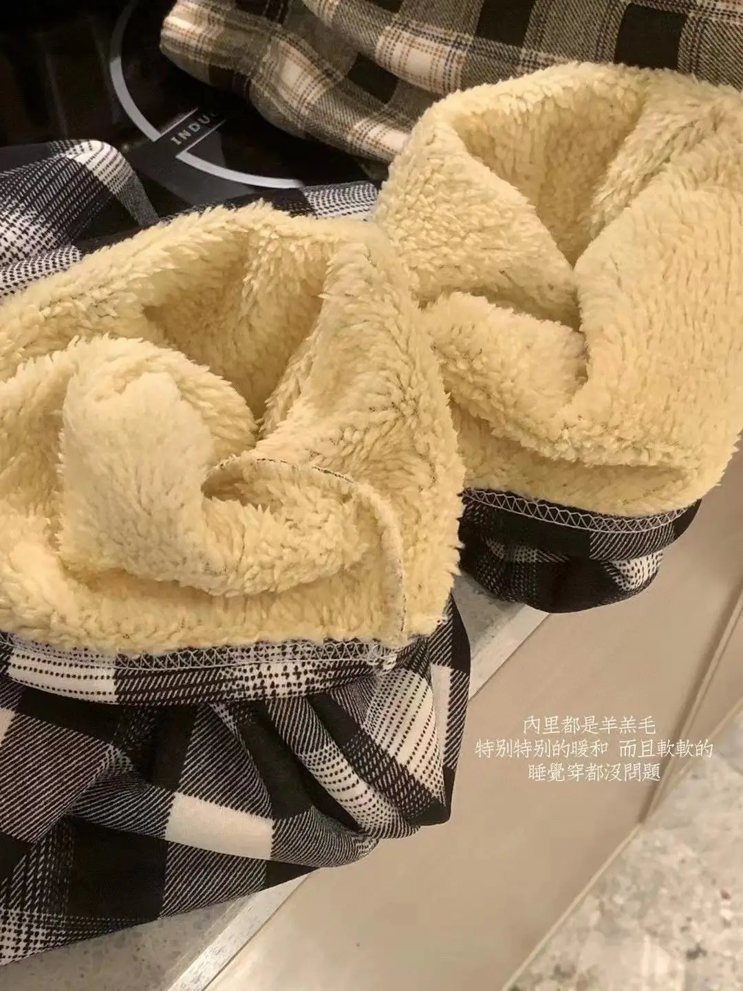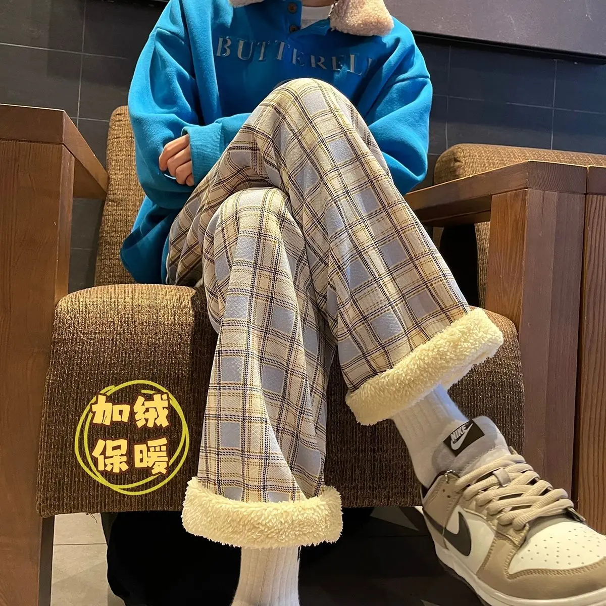 Padded Thickened Wide Leg Pants Winter LambswoolPlaid Pants Female High Waist Casual Straight Pants