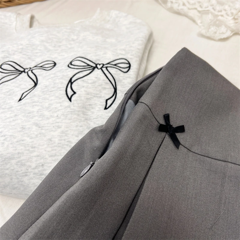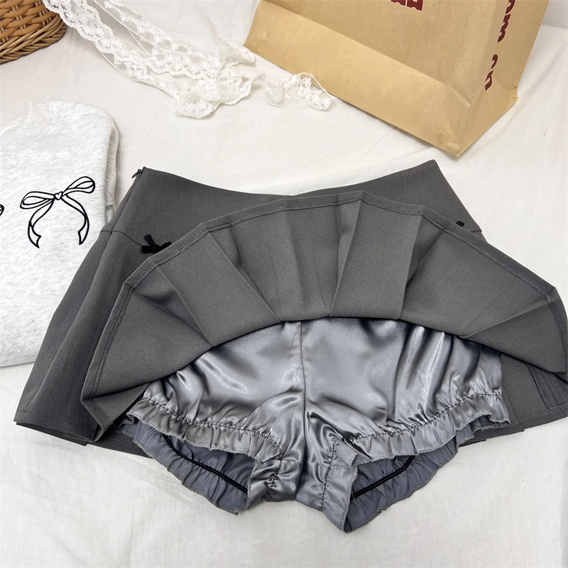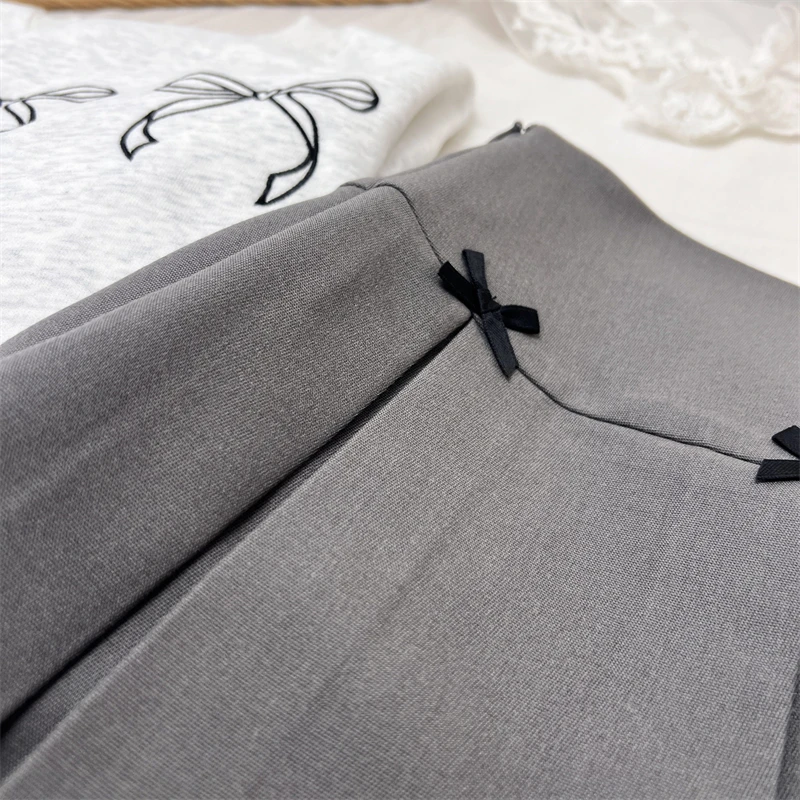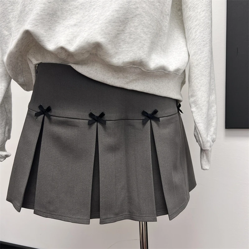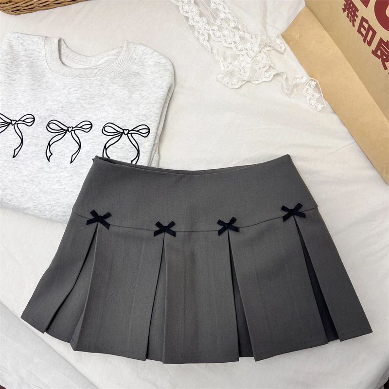 Preppy Style Pleated Skirts Classical Grey 2000s Aesthetic High Waist A-Line Skirt Bow Kawaii Girls Elegant Japanese Streetwear