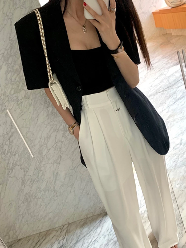 Retro Suit Collar Single Breasted Women Short Sleeved Korean Chic Casual Slim Jacket Female Cotton Linen Jacket Top 2024 Summer