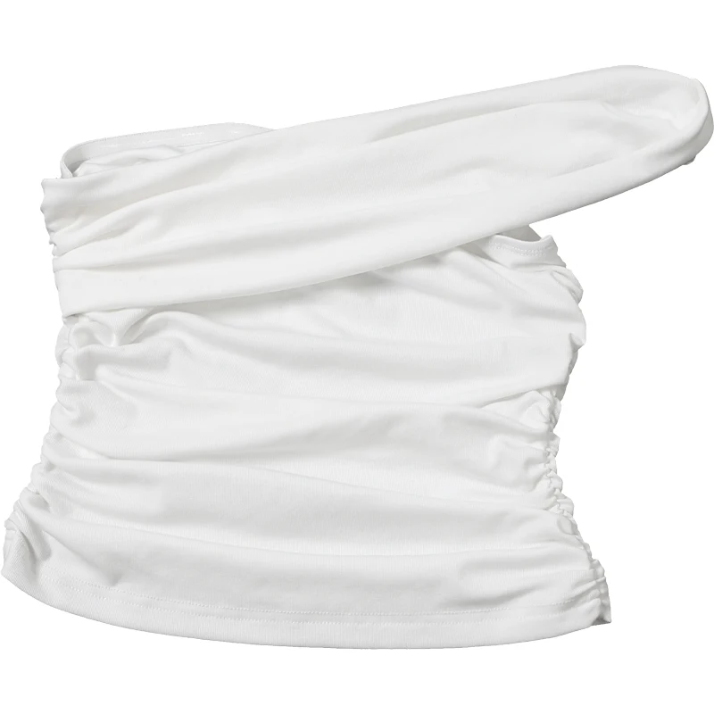 Ruffles One Shoulder Tops Female Summer Sleeveless Simple Wild Basic Patchwork Casual Party Streetwear Skinny Vest