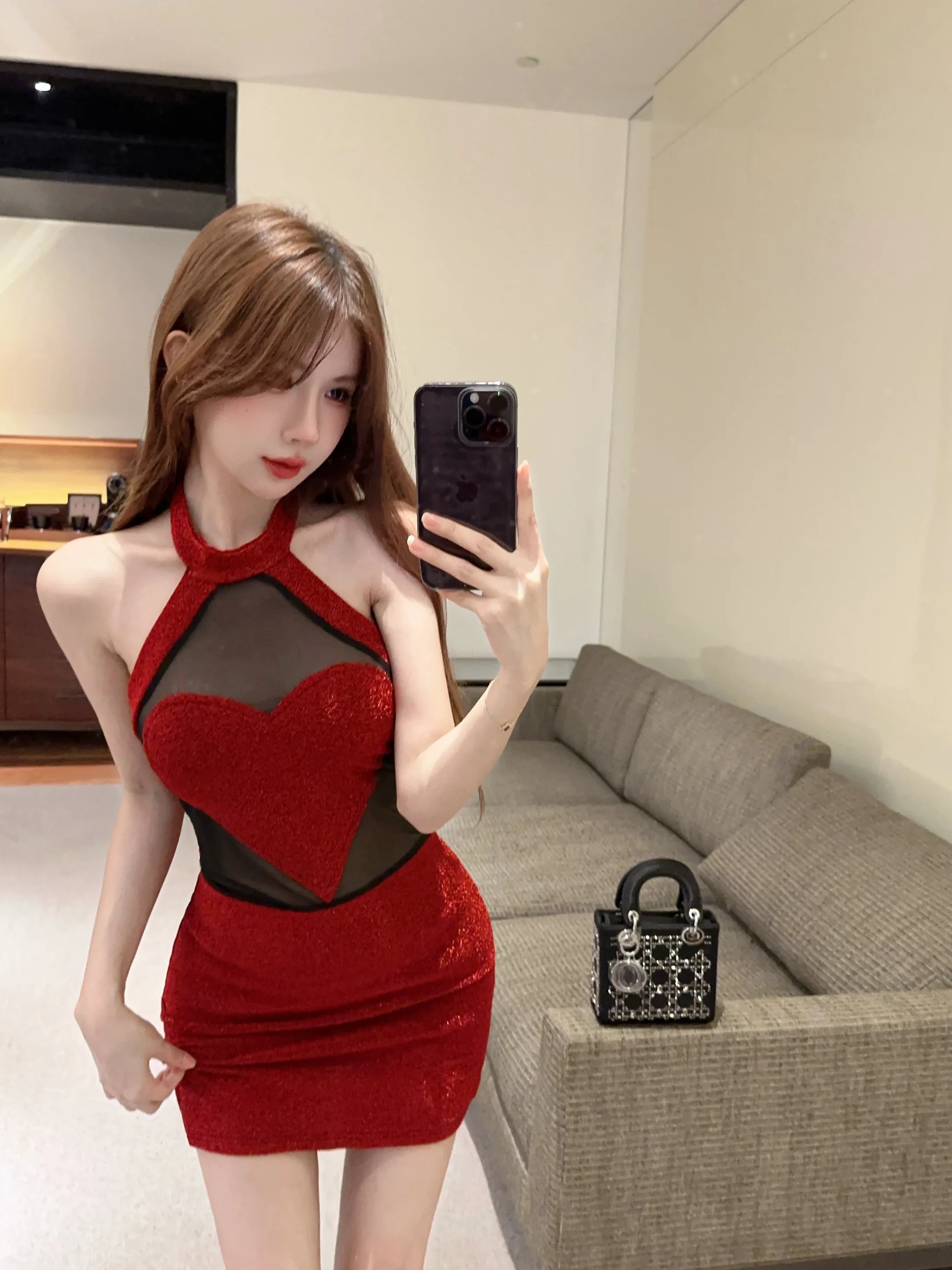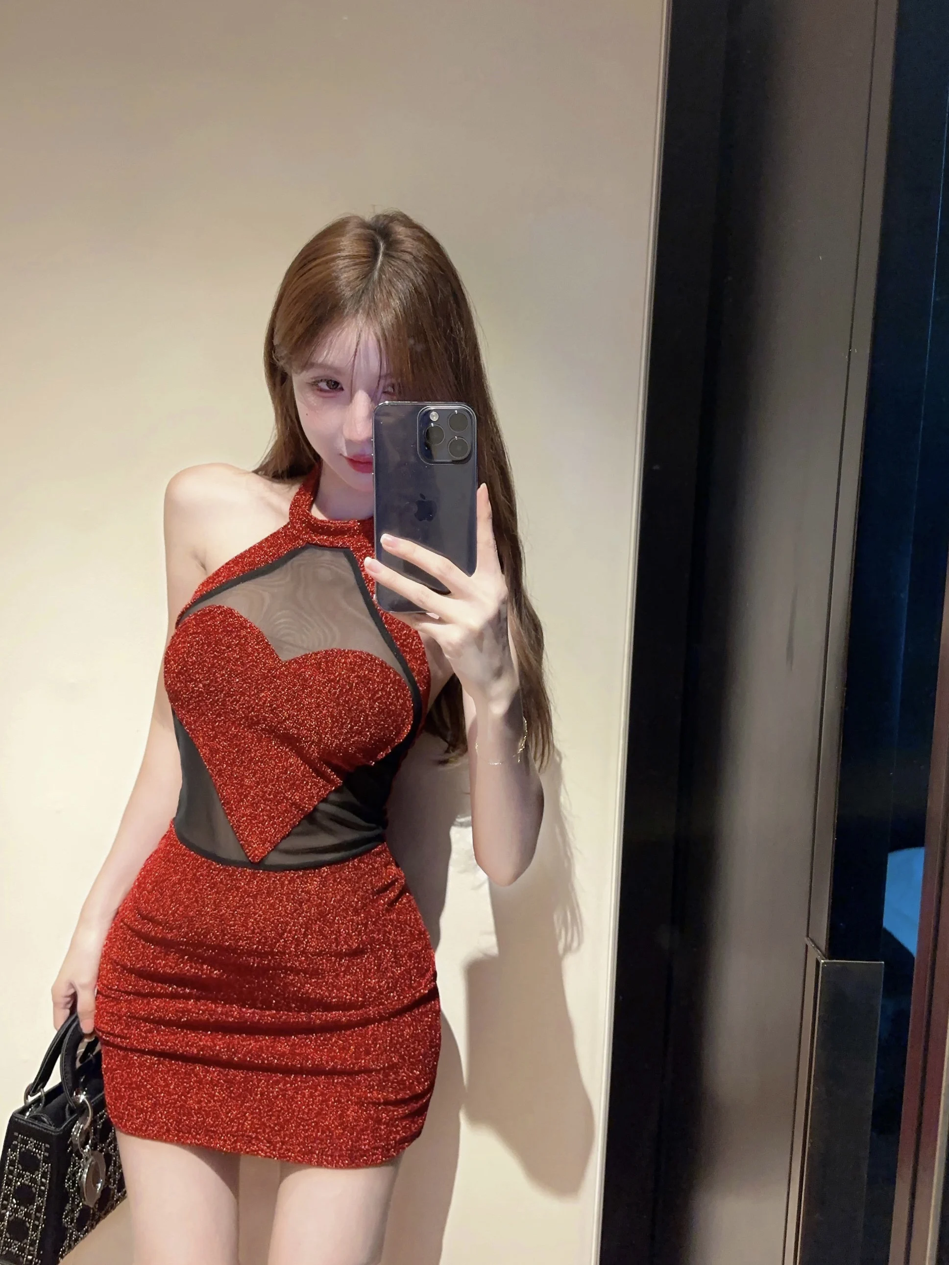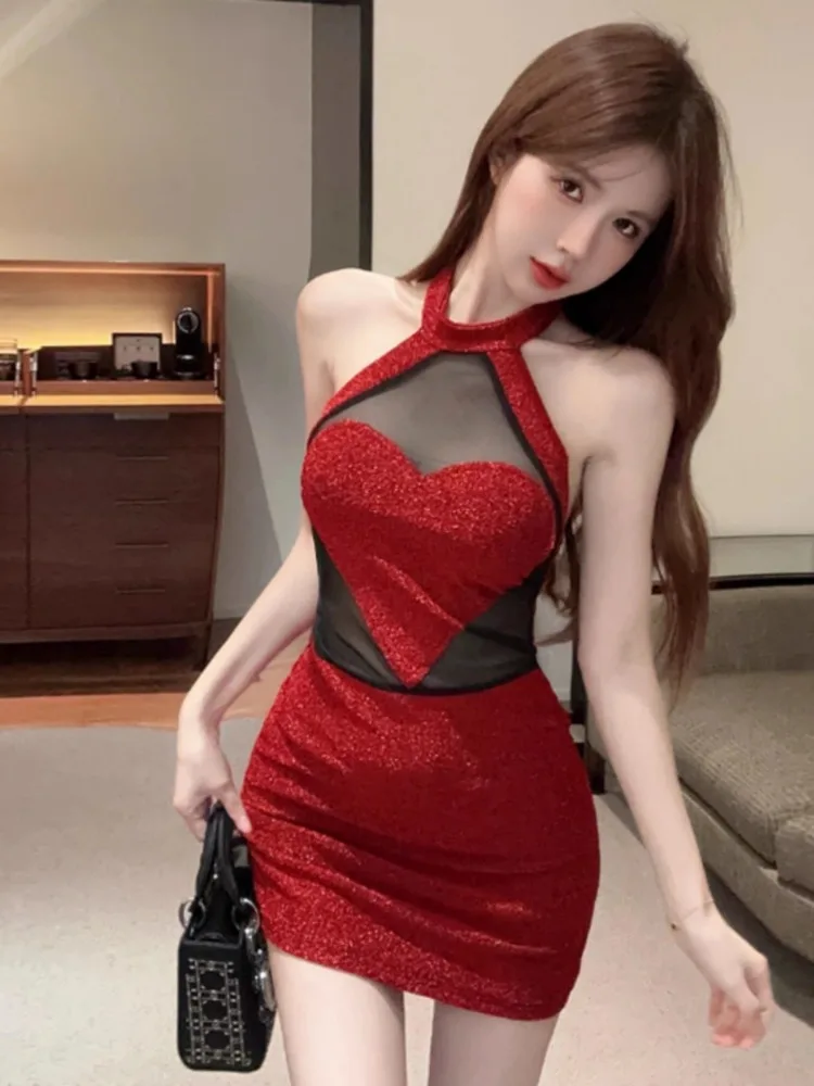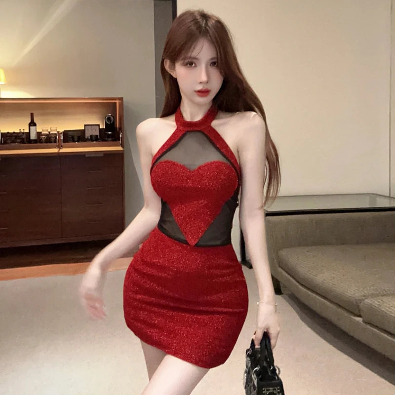 Sexy 3D Heart Halter Red Night Party Dress Women Summer Sweet High Waist Backless Slim Fit Sleeveless Y2k Mini Dresses