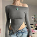 Sexy Asymmetrical Tees Women T-shirt Solid New Autumn Streetwear Long Sleeves Crop Top Fashion Casual Bodycon T-shirts Female