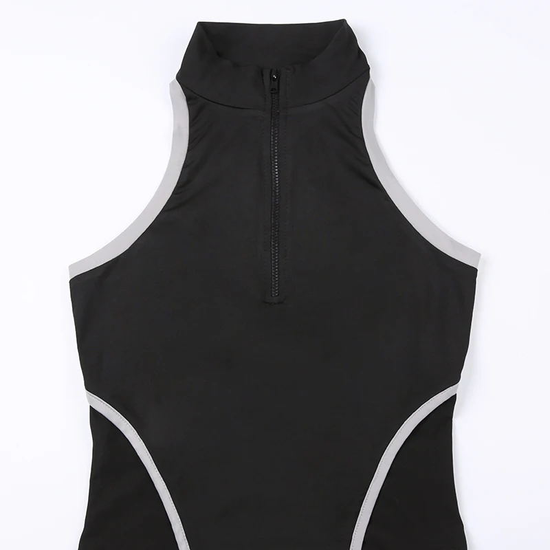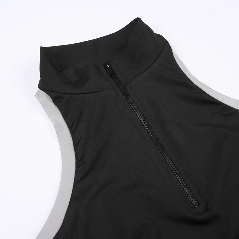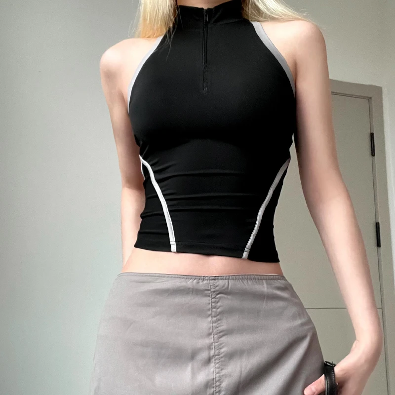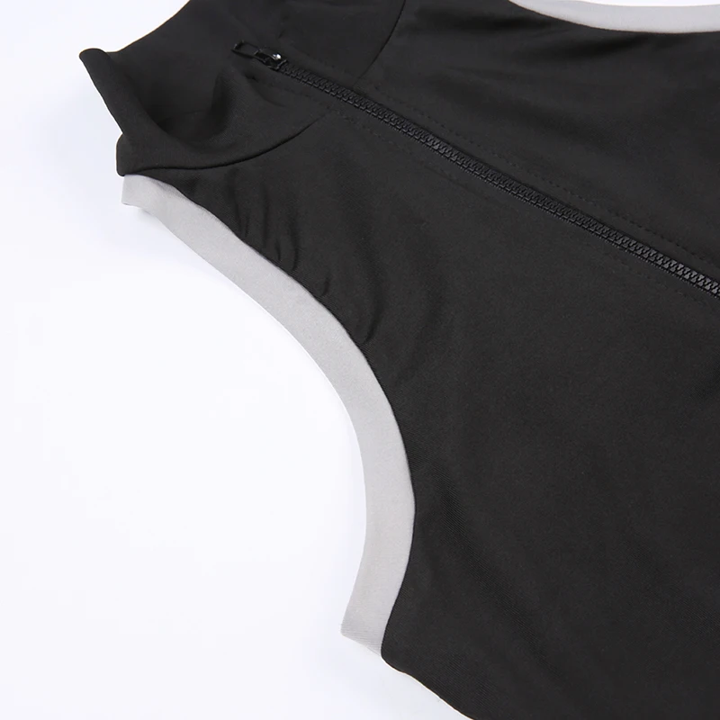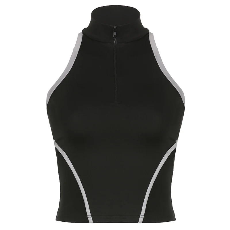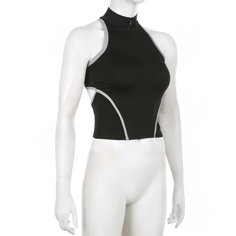 Sexy Backless Hollow Out Crop Top Zip Up Turtleneck Sleeveless Patchwork Tank Tops Women Korean Fashion Hip Hop Vest Chic