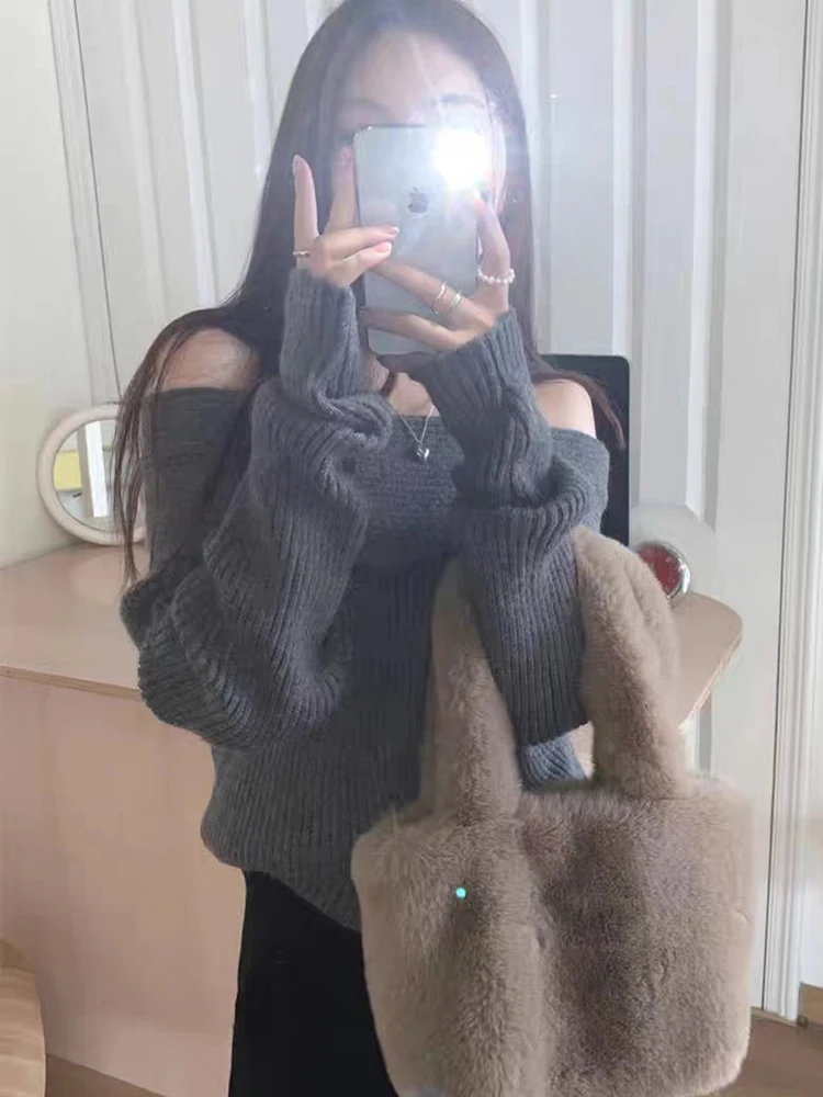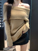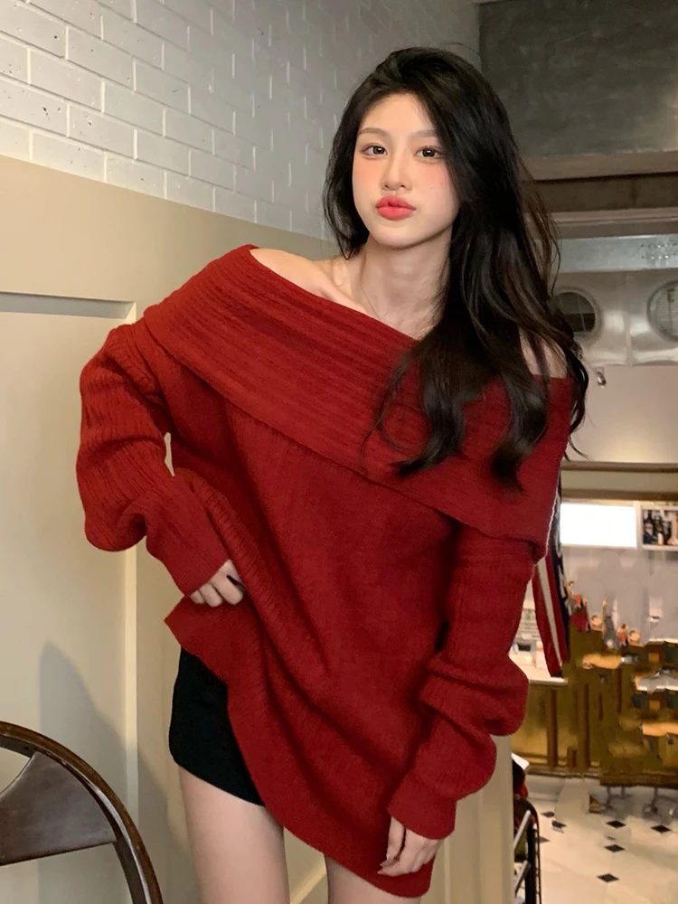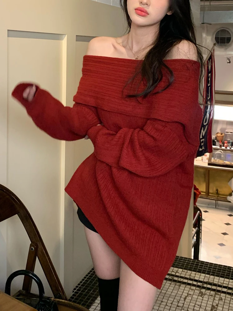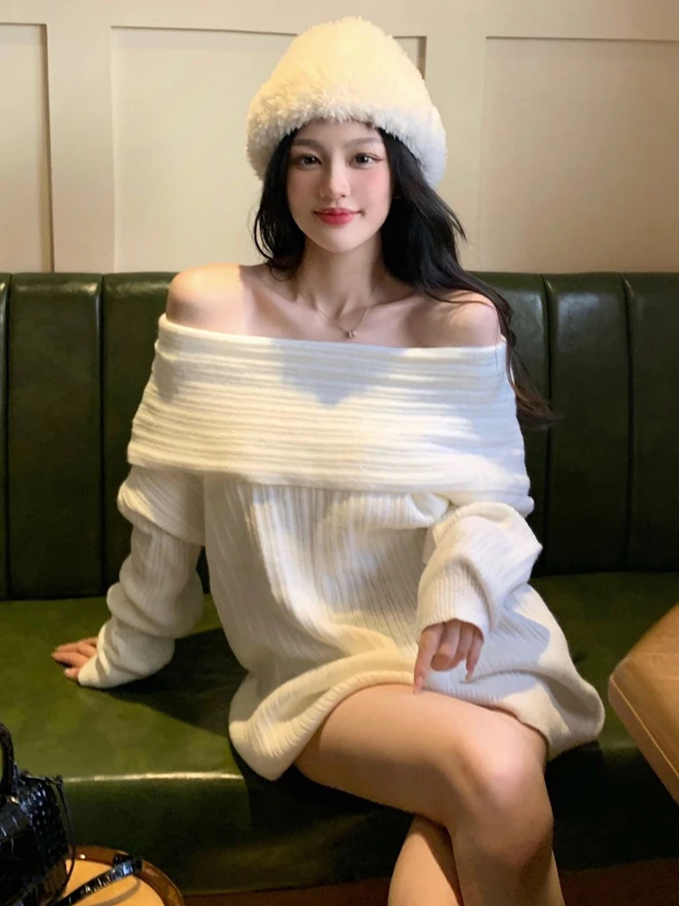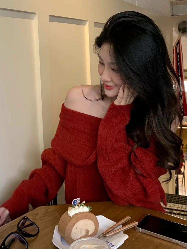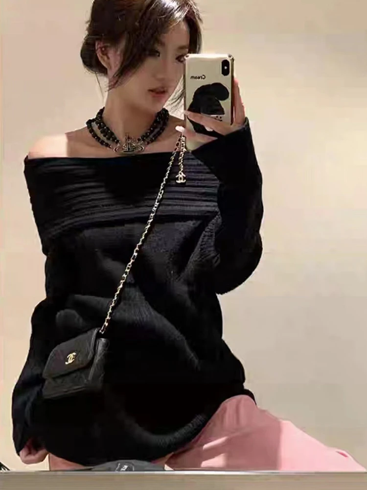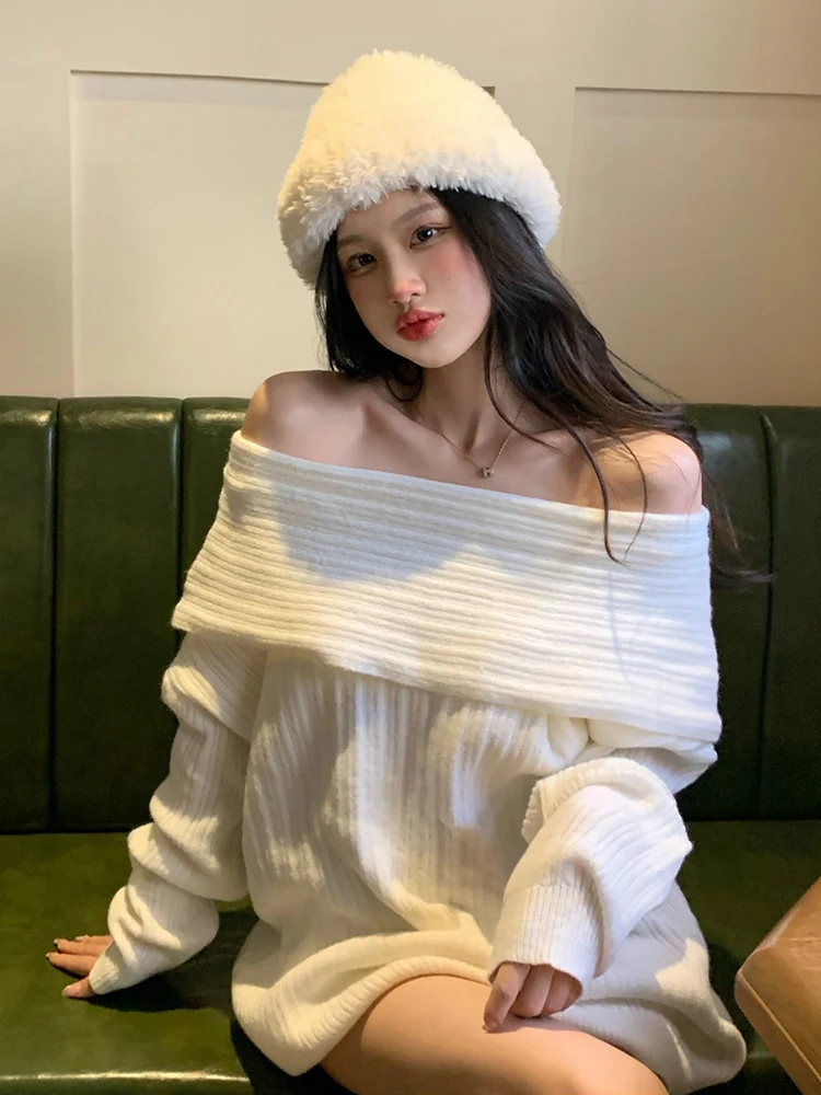 Sexy Off Shoulder Sweater Women Long Sleeve Loose Top Fashion Gentle Elegant Knitwear Pullover Autumn Winter Female New