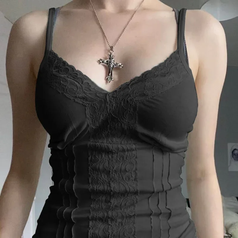 Sexy Patchwork Lace Trim Camis Top Sweet Casual Slim Solid V-Neck Sleeveless Tank Tops Women Summer Streetwear Lady