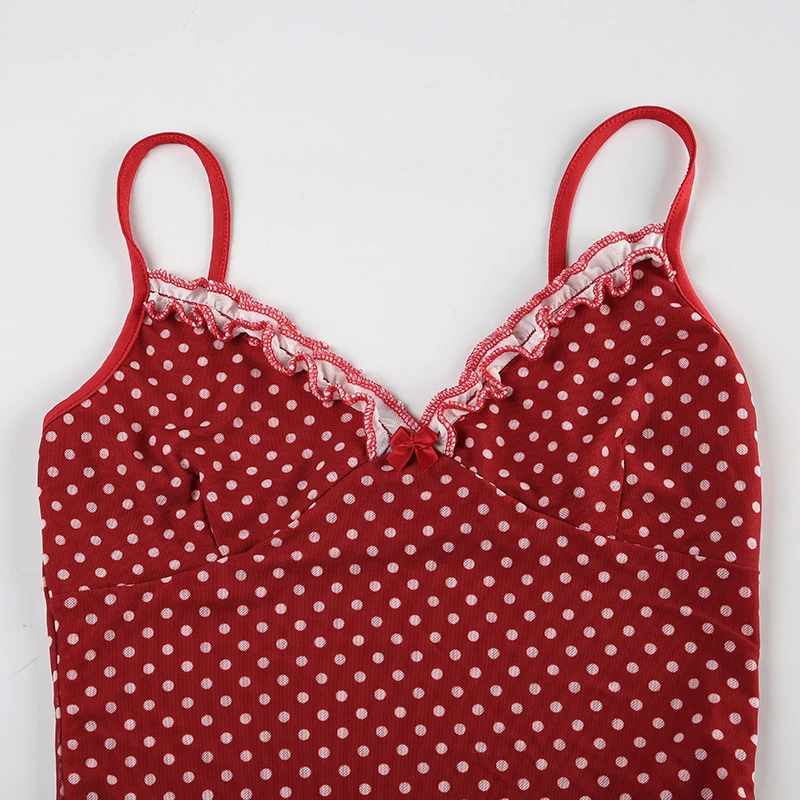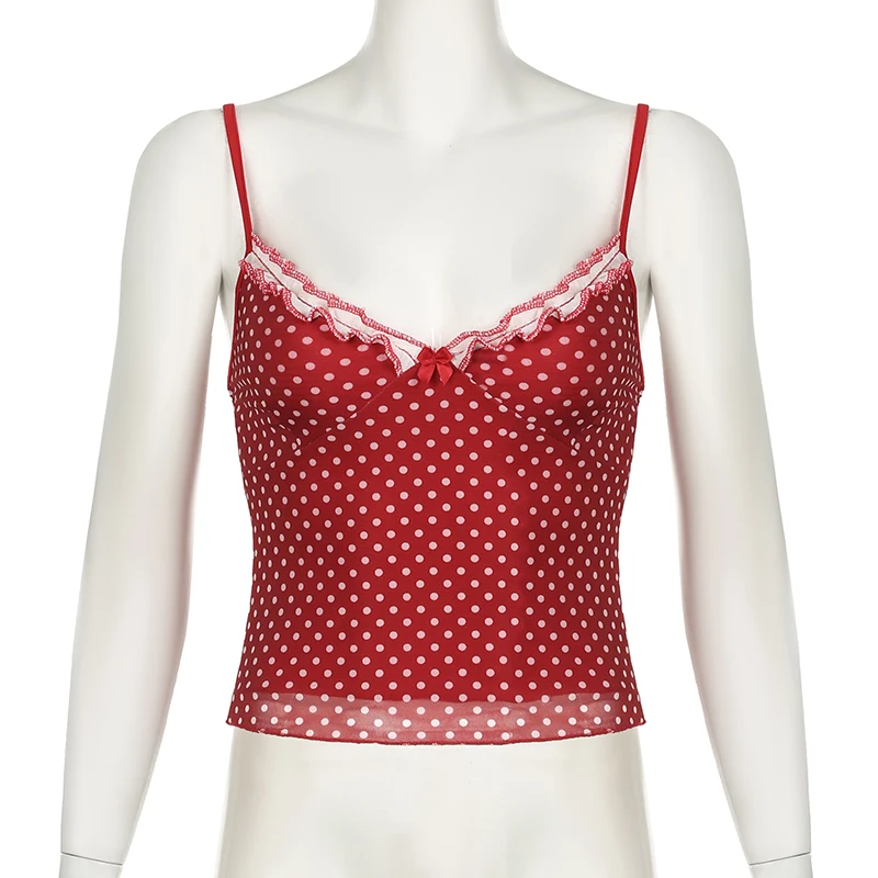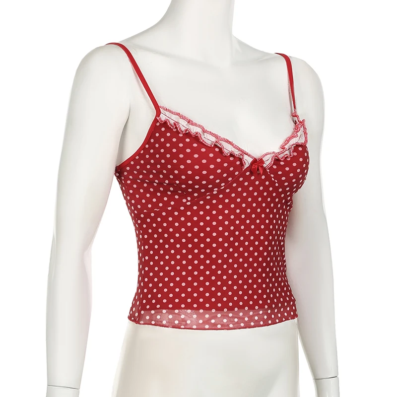 Sexy Slim Dot Printed Camis Tops Holiday Contrast Color V-Neck Sleeveless Tank Tops Women 2024 Summer Fashion Streetwear