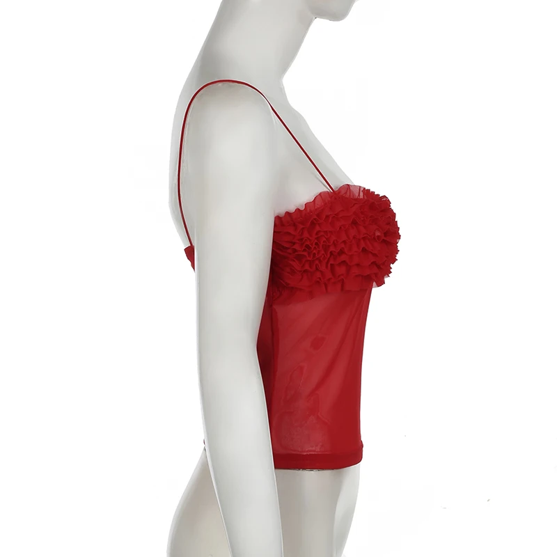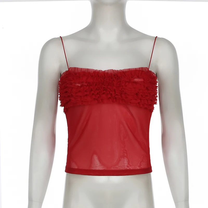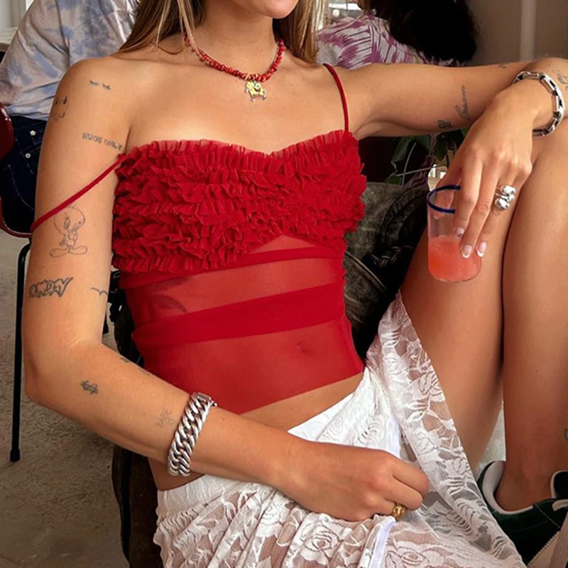 Sexy Transparent Mesh Crop Top y2k Vintage Ruched Patchwork Sleeveless Slim-fitting Camisole Women Casual Chic Tee Summer